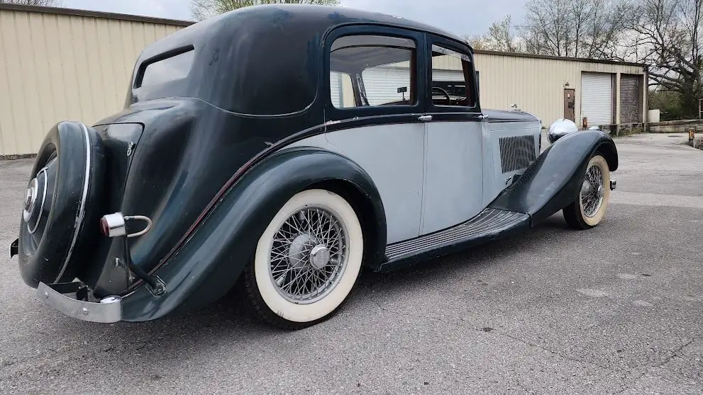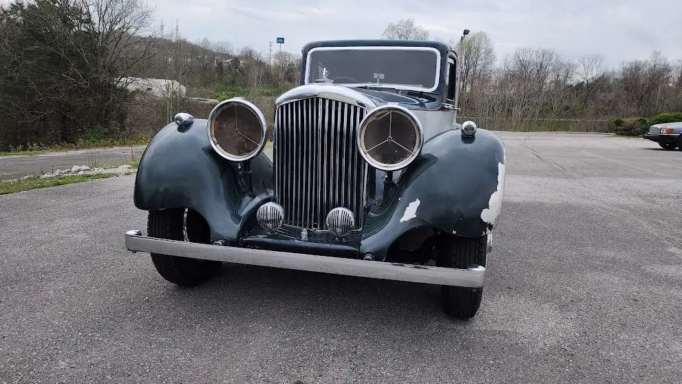 1936 Derby Bentley 4 1/4 saloon with body by Hooper This Bentley remained with one family for more than 40 years. Her original body work is in good condition as is the chassis, engine, gearbox and other mechanicals. She would benefit greatly from a new set of tires and cosmetically is in need of a repaint. When we acquired this Bentley in 2024 it had seen very little use in the proceeding years. The owner states that he drove it a few months earlier but not extensively. We gave her a good servicing changing all of the oils and fluids. She also received new valve seals, water pump rag joint, alternator rag joint and steering rag joint as well as new belt and hoses. Brakes were checked and found in good operating order. The steering box was serviced and oil refreshed. She starts well, runs well, runs cool and has good oil pressure. The transmission shifts properly through the gears. She really needs a new set of tires. Even though these do not show much where they are bias plies with too many years of sitting. This causes significant vibrations when driving. The coach work is all aluminum and in very good condition. Wth the exception of the right rear door there is little to no sag in the hinges. The carpet is older but presentable. The leather is in good condition and presents well. The headliner is thought to be original and in respectable condition for its age. The finish on the wood has a nice patina. All the instruments are present though currently the fuel gauge does not function and is not installed but included with the vehicle. The age of the paint is unknown, but the dark green paint has numerous chips, cracks and flaking. Chassis number B-137-HM Engine number F 7 BE Original registration confirmed GS 6772 Delivered new January 1937 Original owner S. J. L. Hardie Driven Man Motors LLC is an enthusiast owned business located just off Interstate 40 in Cookeville,Tennessee. We are 1 hour from the Nashville International Airport. We will be happy to personally show you this vehicle.