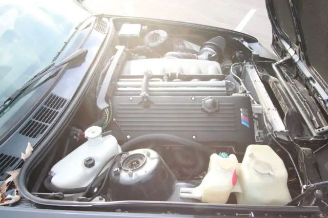 I bought this car about two years ago as a companion project for my 1991 Brilliant red M3. When I found it, the car had been sitting under a tarp in southern MN for about 5 years after a deer hit. The paint was absolutely gone, car had light dings all over it, replica E36 style 24 wheels and an OBD1 S52 under the hood. Still, the car's sheet metal looked over all pretty good and it was a real clean title WBS chassis. Upon getting the car home, I had the car fully repainted in the original two-stage Diamondschwarz with high quality PPG paint, had all the dents carefully removed from the original sheet metal when possible. I was not able to save the original hood, a rust free OEM replacement hood was installed and a replica VIN sticker showing the vehicle VIN has been placed on the hood (And left front fender) from Pukar Designs. Right front fender (was lightly bent by the deer) has been meticulously straightened and repaired all-metal at great cost and bears the originality so coveted by M3 owners. Every panel on the car including both bumpers, doors, spoiler, trunk is original except an OEM replacement fender and hood.