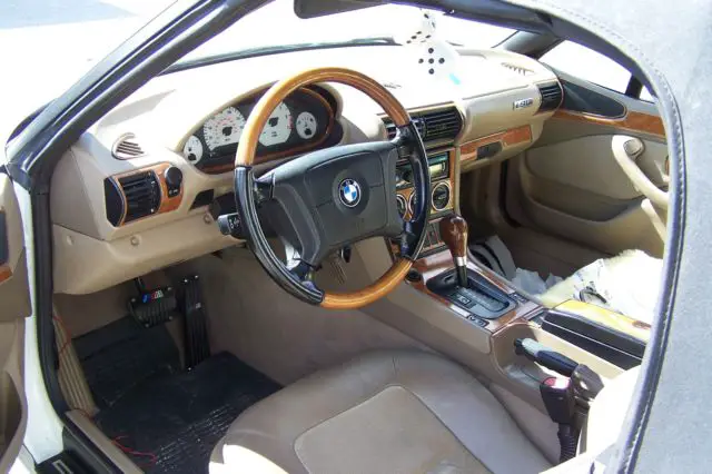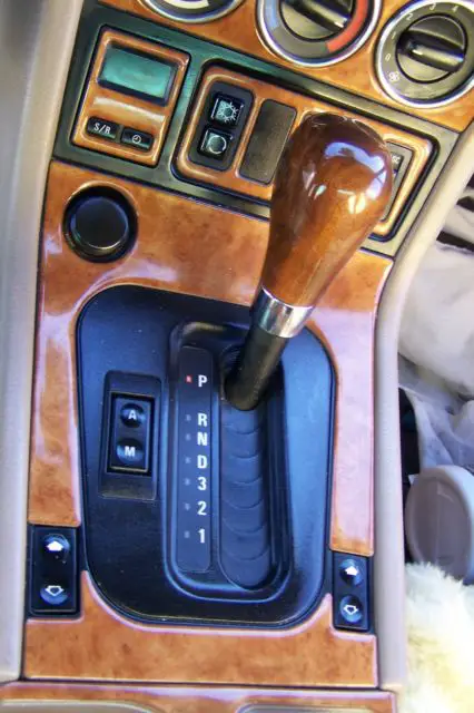 Car options: power windows, power steering, power door locks, A/C, factory alarm, automatic transmission, wooden steering wheel, trunk lid luggage rack. Car has factory "M" badges on rear quarter panels.