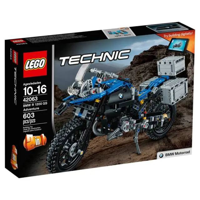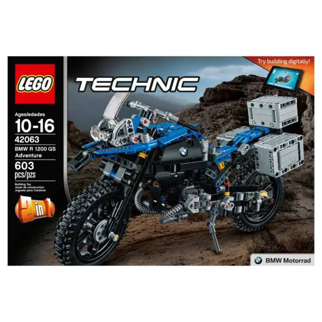 Item Description Create the iconic lines of the BMW R 1200 GS Adventure with this highly detailed 2-in-1 LEGO® Technic model, including an array of authentic features and functions. Explore the high-tech innovation of the BMW R 1200 GS Adventure with this authentic LEGO® Technic replica, featuring a blue and black color scheme, black spoke wheels with all-terrain tires, windshield and a detailed dashboard and exhaust. Functions include handlebar steering, front and rear suspension, two-cylinder boxer engine with moving pistons, visible shaft drive, opening top case and luggage panniers, and a kickstand. This 2-in-1 model has been designed to provide an immersive and rewarding building experience. It was developed in partnership with BMW and rebuilds into a unique concept model, created in collaboration with BMW designers. A free interactive, 3D digital LEGO® Building Instructions app is available online, for both models. ? Features black spoke wheels with all-terrain tires, windshield, detailed dashboard and exhaust, working steering, stabilizing telelever front suspension and rear suspension, 2-cylinder boxer engine with moving pistons, visible shaft drive, opening top case and luggage panniers, and a kickstand ? Check out the cool blue and black color scheme ? Includes a collection of authentic stickers ? Maneuver the BMW R 1200 GS Adventure and see the engine and shaft drive spring to life ? A uniquely decorated LEGO® Technic 40th Anniversary brick is included with this model ? This LEGO® Technic model is designed to provide an immersive and rewarding building experience ? This set offers an age-appropriate building experience for ages 10-16 ? Interactive, 3D digital LEGO® Building Instructions app available online for both A and B models. Ask your parents? permission ? 2-in-1 model: rebuilds into a unique concept model, created in collaboration with BMW designers ? BMW R 1200 GS Adventure measures over 7? (18cm) high, 13? (33cm) long and 3? (10cm) wide ? Alternative model measures over 4? (12cm) high, 11? (30cm) long and 7? (20cm) wideProduct Specifications:Certifications: CPSIA Certified Manufacturer's Suggested Age: 10-16 years Includes: toy building components Number of Pieces: 603 Material: plastic Educational Focus: Creative Thinking Languages: English, French, Spanish Dimensions: 10.32 inches H x 2.78 inches W x 15.04 inches L Product Weight: 2.13 pounds Care and Cleaning: Wipe Clean with a Damp Cloth Battery: no battery used