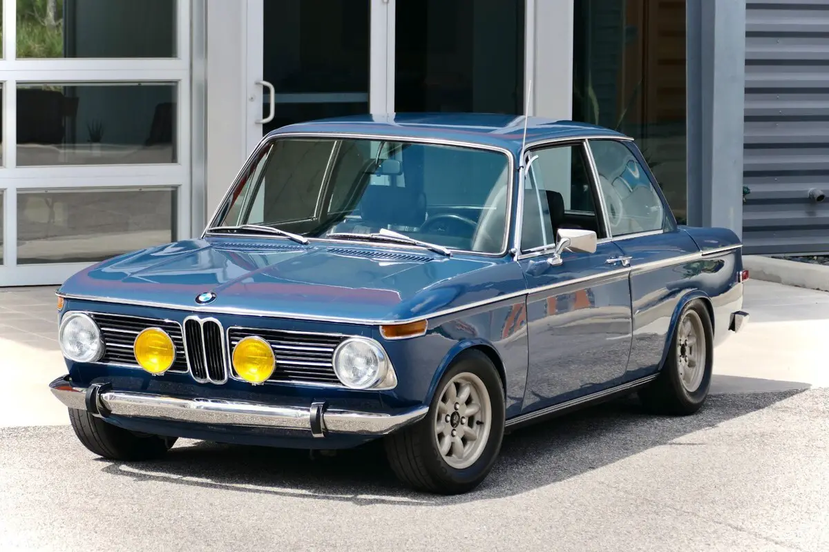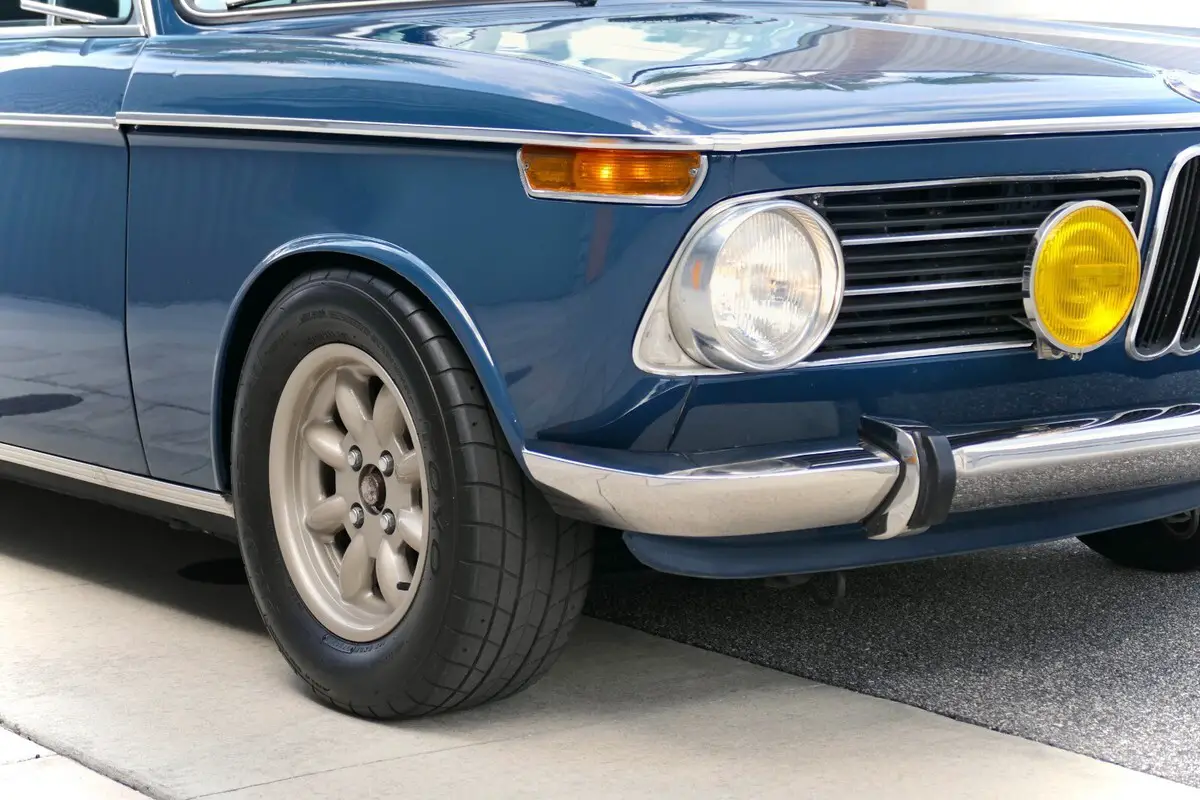 This 1971 BMW 2002 was initially delivered to Hoffman Motors of New York, New York, and refurbished under previous ownership with work that included repainting the body in its factory Riviera and installing a Weber carburetor, a stainless-steel exhaust system, 13″ Minilite-style wheels, and Ireland Engineering springs and sway bars. The seller acquired the car in 2023 and proceeded to replace the headliner and install a MOMO steering wheel. Power is provided by a 2.0-liter M10 inline-four mated to a four-speed manual transmission, and the car is further equipped with H4 headlights, Cibie fog lights, a revised rear bumper, a cabin heater, a Sears AM/FM radio, and reclining front seats upholstered in Black Skai vinyl. The car left the factory finished in Riviera (036), and it was stripped and repainted over 369 man-hours in 2007 by Walsh’s Auto Body of Providence, Rhode Island. Exterior details include H4 headlights and Cibie yellow-lens fog lights as well as a driver-side mirror, European-specification front turn signals, a revised stainless-steel rear bumper, pop-out rear windows, round taillights, and chrome trim. Corrosion and paint imperfections are barely noticeable on the front hood, however as you can see, the car is as straight and true as an arrow! Minilite-style 13″ wheels by Compomotive are mounted with 205/60 Toyo Proxes RA1 tires. The wheels were freshly refinished in Satin Titanium powdercoat, to give the car a motorsport inspired personality. A non-matching full-size spare resides in the trunk. Ireland Engineering springs and sway bars have been installed, and braking is handled by power-assisted front discs and rear drums. The reclining front seats are upholstered in Black Skai vinyl that extends to the rear bench and door panels. There is a slight crack in the driver’s seat, as photographed. Black carpeting and Coco mats line the floor, and amenities include a heater, a Sears AM/FM radio, and crank-operated windows. The headliner was replaced under previous ownership. The MOMO three-spoke steering wheel fronts VDO instrumentation that consists of a 120-mph speedometer, an 8k-rpm tachometer, and gauges for coolant temperature and fuel level. The five-digit odometer shows 13k miles, approximately 1,500 miles were added by the seller. True mileage is unknown. The Odometer cluster is finicky at best, and would likely need to be restored with new gears to be fully optimal. The 2.0-liter M10 inline-four has been fitted with a Weber two-barrel carburetor, an Ireland Engineering exhaust header, and a stainless-steel exhaust system. Power is sent to the rear wheels through a four-speed manual transmission.