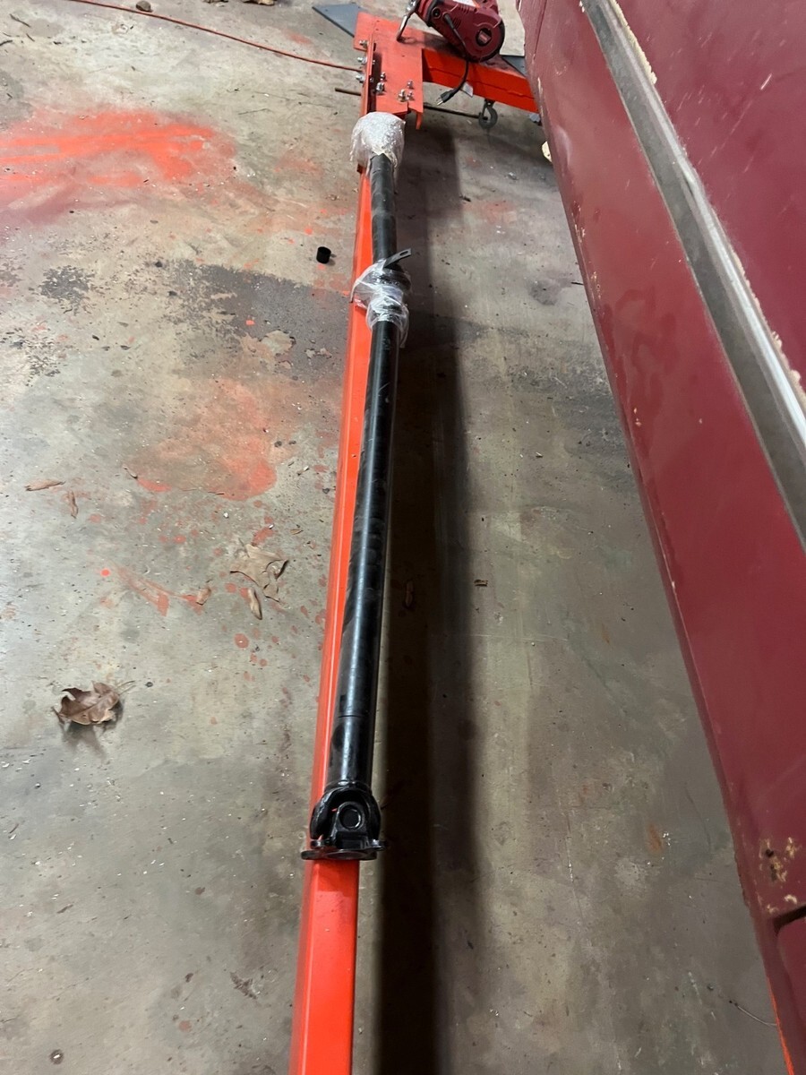 · Ireland Engineering rebuilt driveshaft W/new universal joints, new rubber mounted center bearing and giubo for short neck differential