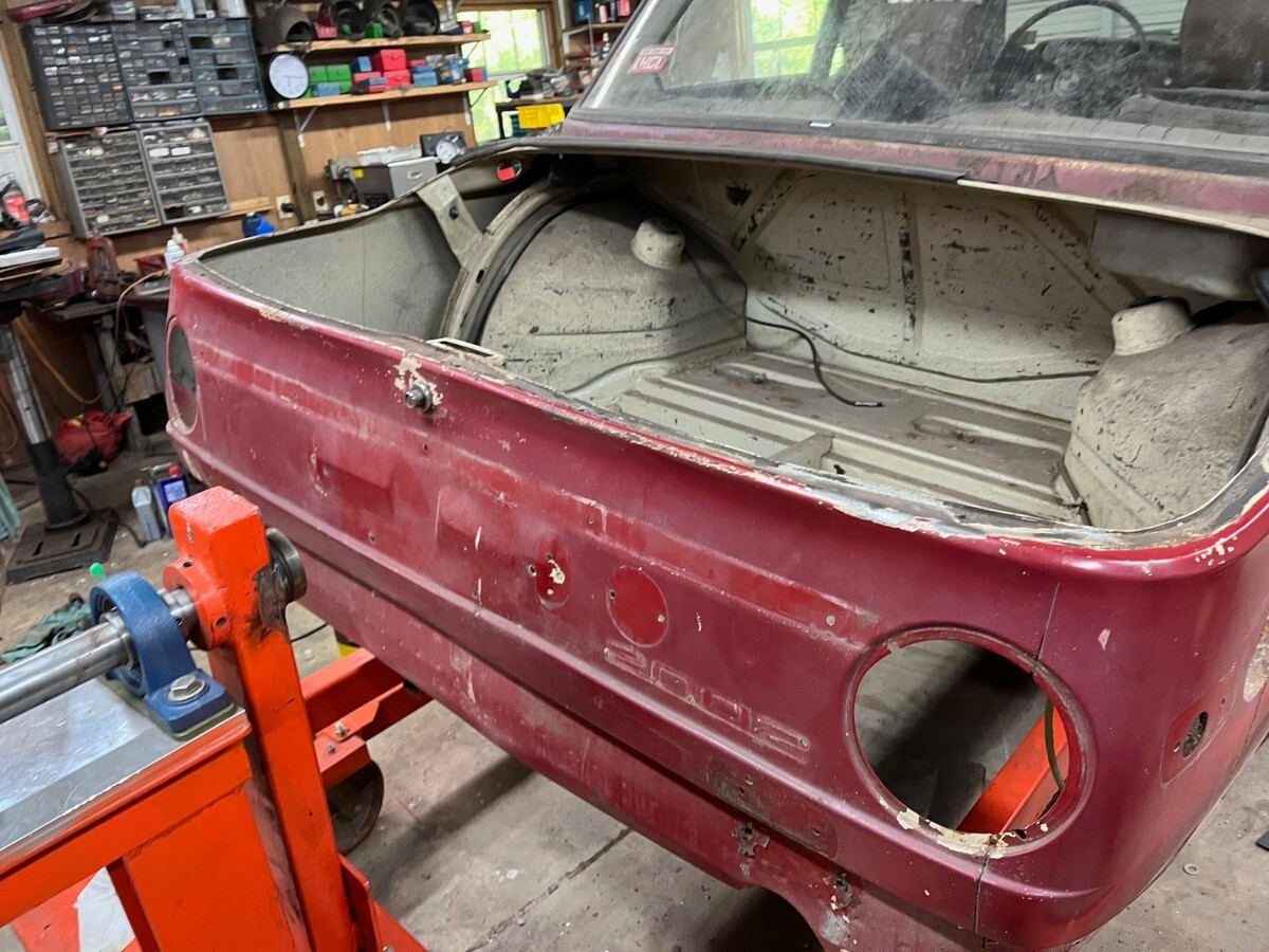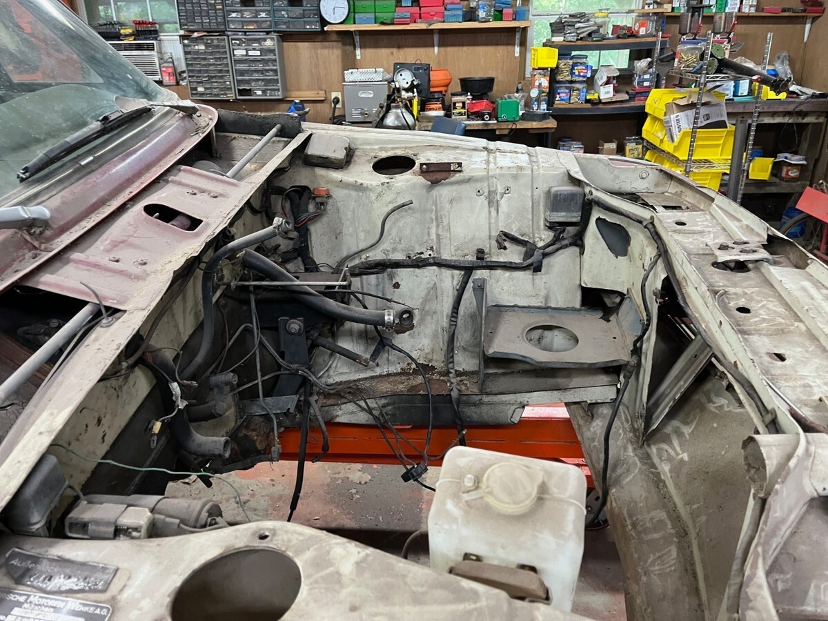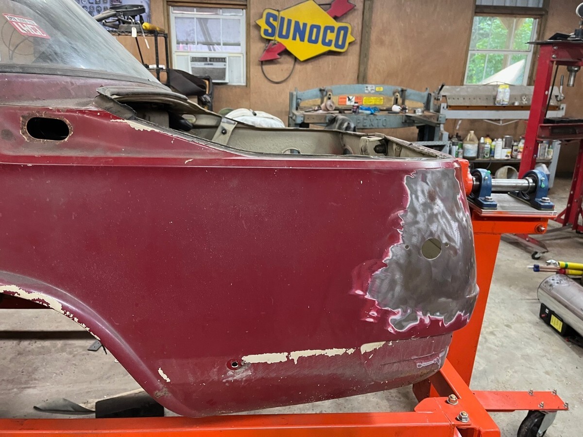 Complete project, all the parts are there plus. New or restored parts are listed bullet points listed below. The shell is bolted to a rotisserie that uses a worm gear box to rotate the chassis with a cordless drill. The chassis locks in place when the rotation stops. The assembly is on 8” swivel casters so it can be moved about.