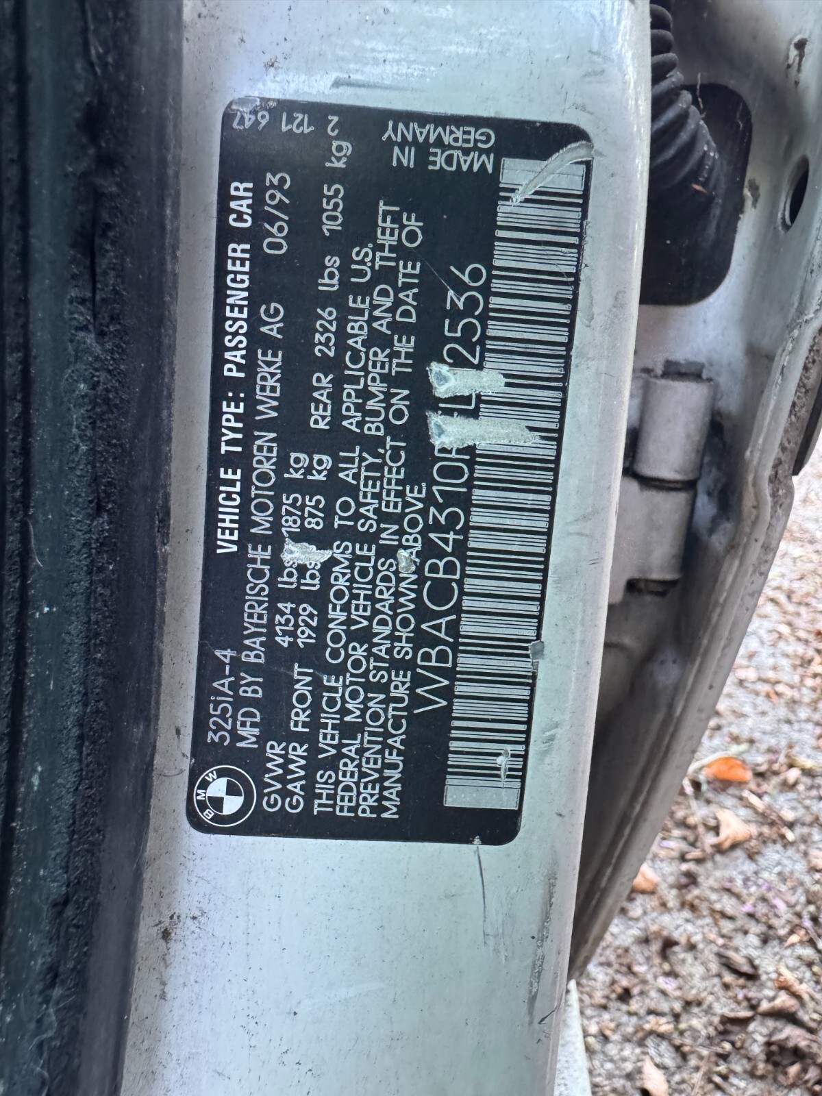 | VIN: | WBACB4310PFL12536 |