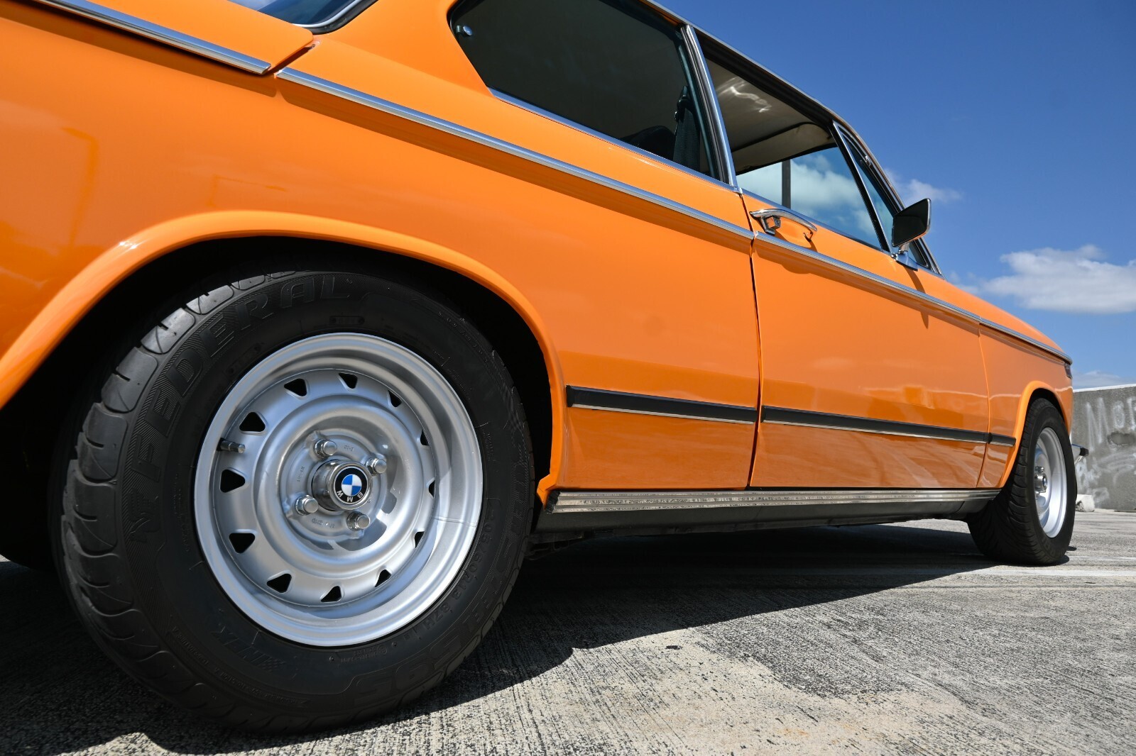 – 13” CMR Alpina/Borrani wheels wear– Federal Super Steel 595 tires– Bilstein Shocks– H&R Springs– Koni Sway Bars– Front Disc Brakes (tii-spec)– E21 rear drum brakes (replaced shoes & hardware)
