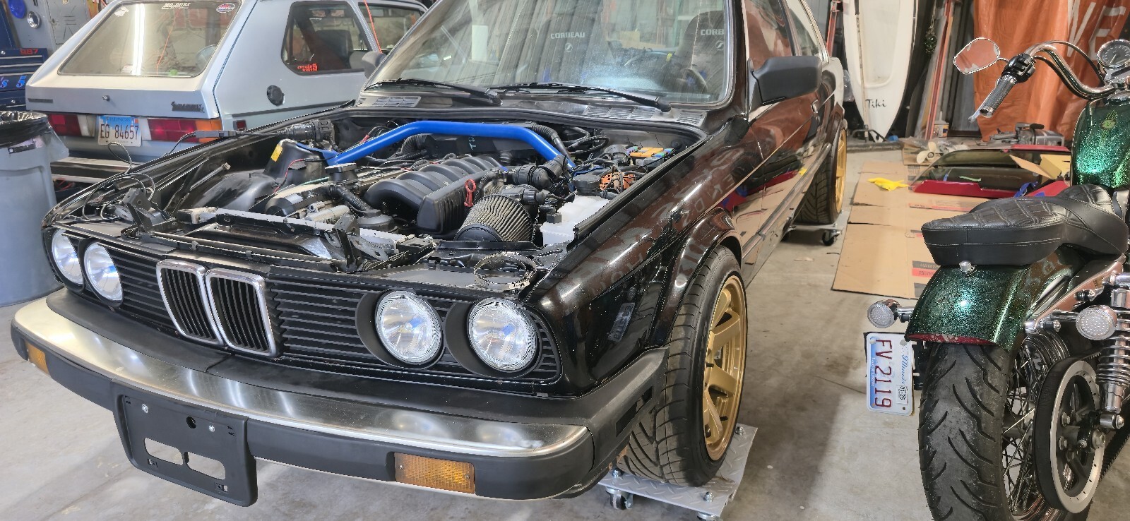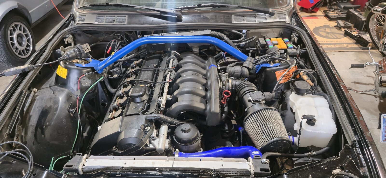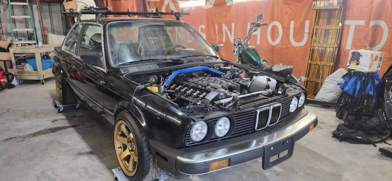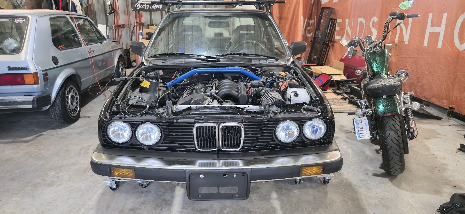 1987 bmw 325e M52 swap I got this in a pair of e30's This one is swapped with the m52. I didn't do the swap so I dont know ow much about it. The car will start right up and run. But when you rev it up, it dies on the down rev. You will need to trailer it.