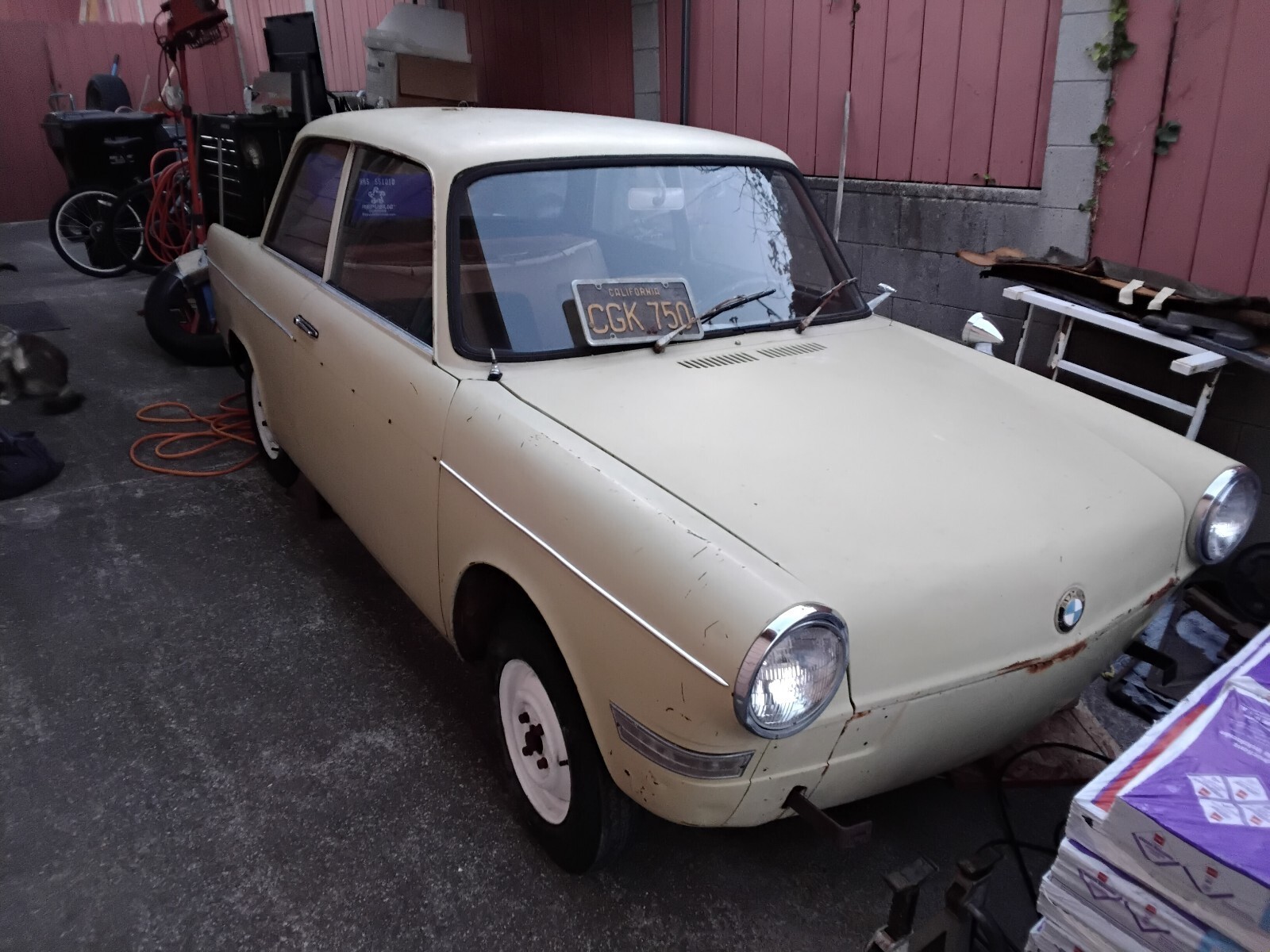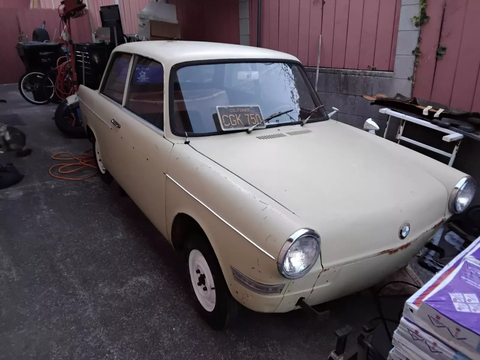The 1960 BMW 700 in yellow is an original vehicle that has been in the owner's possession for 2 years. Despite needing work and not being regularly driven, the car is described as clean and well-maintained. This classic BMW model offers a glimpse into the past with its unique design and color, making it a desirable choice for collectors or enthusiasts looking for a restoration project.