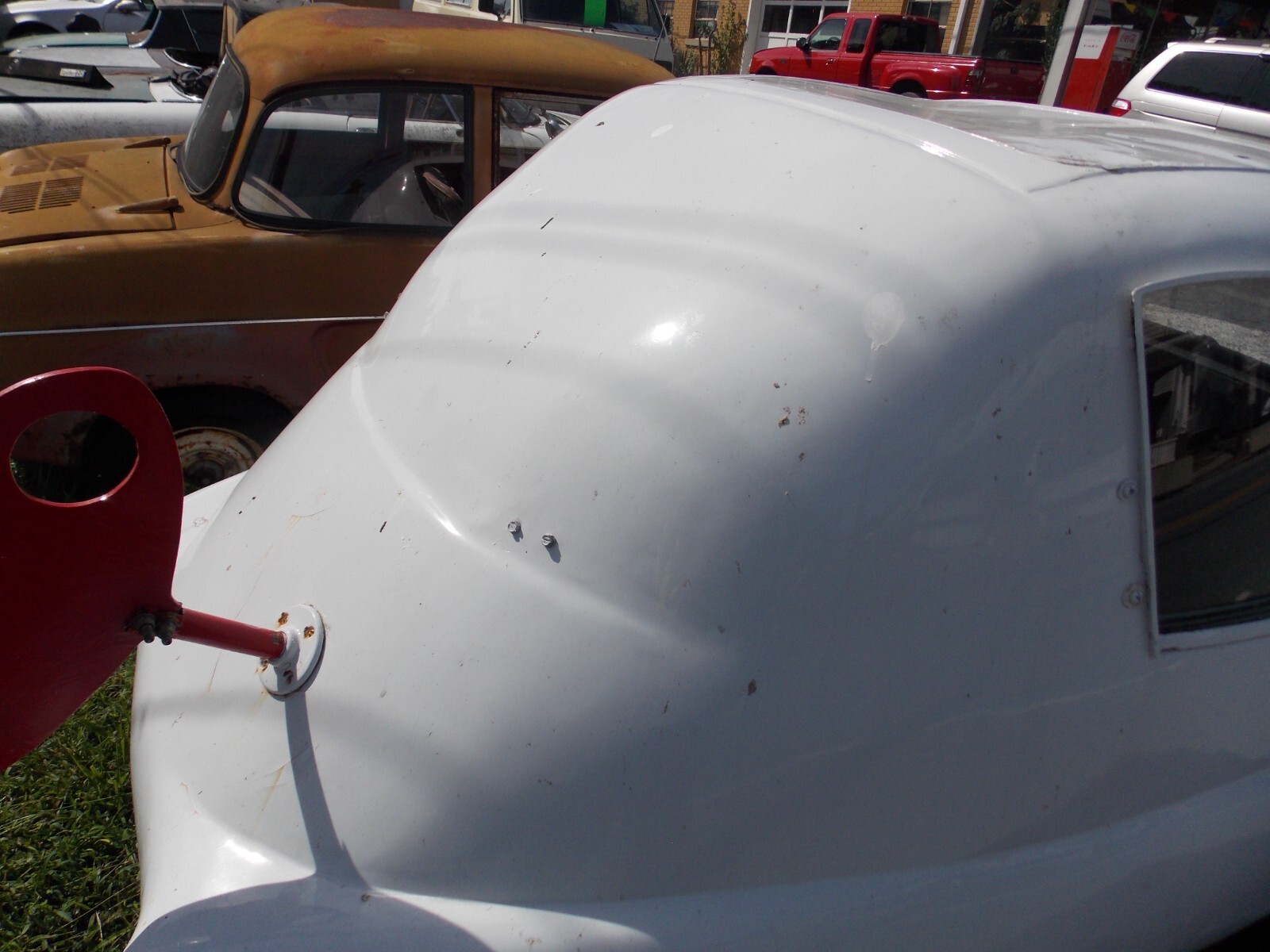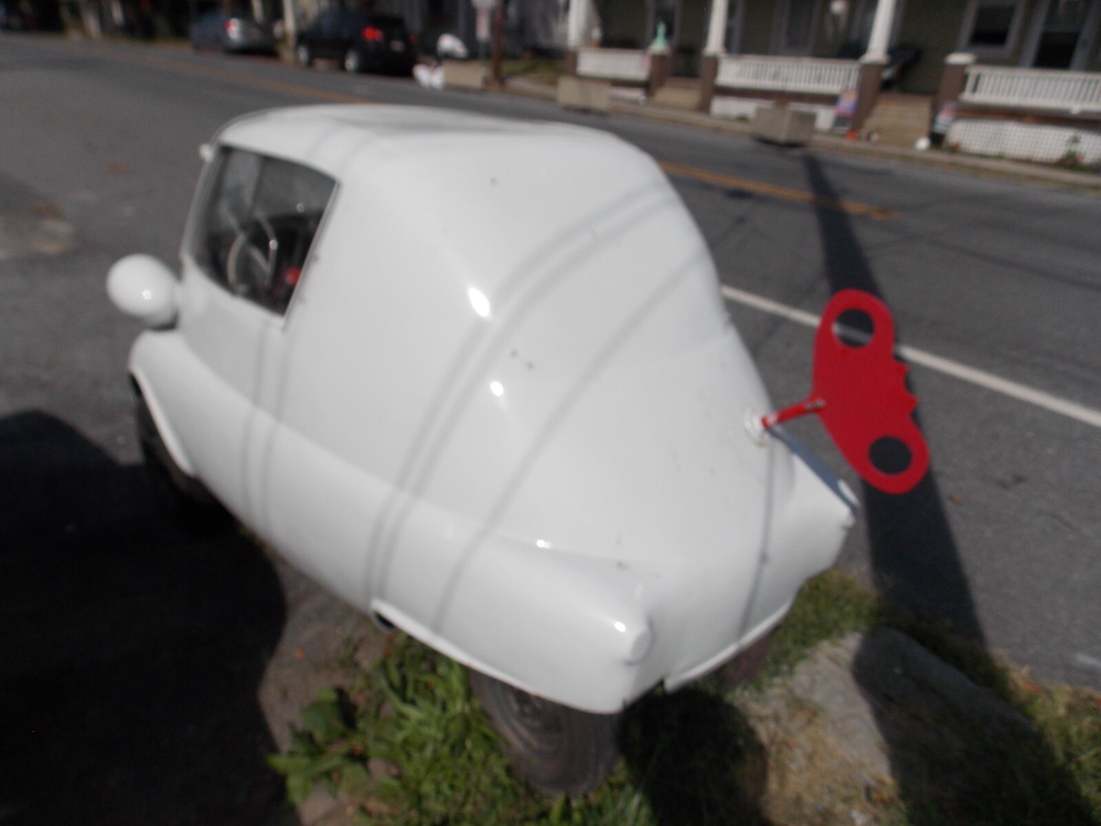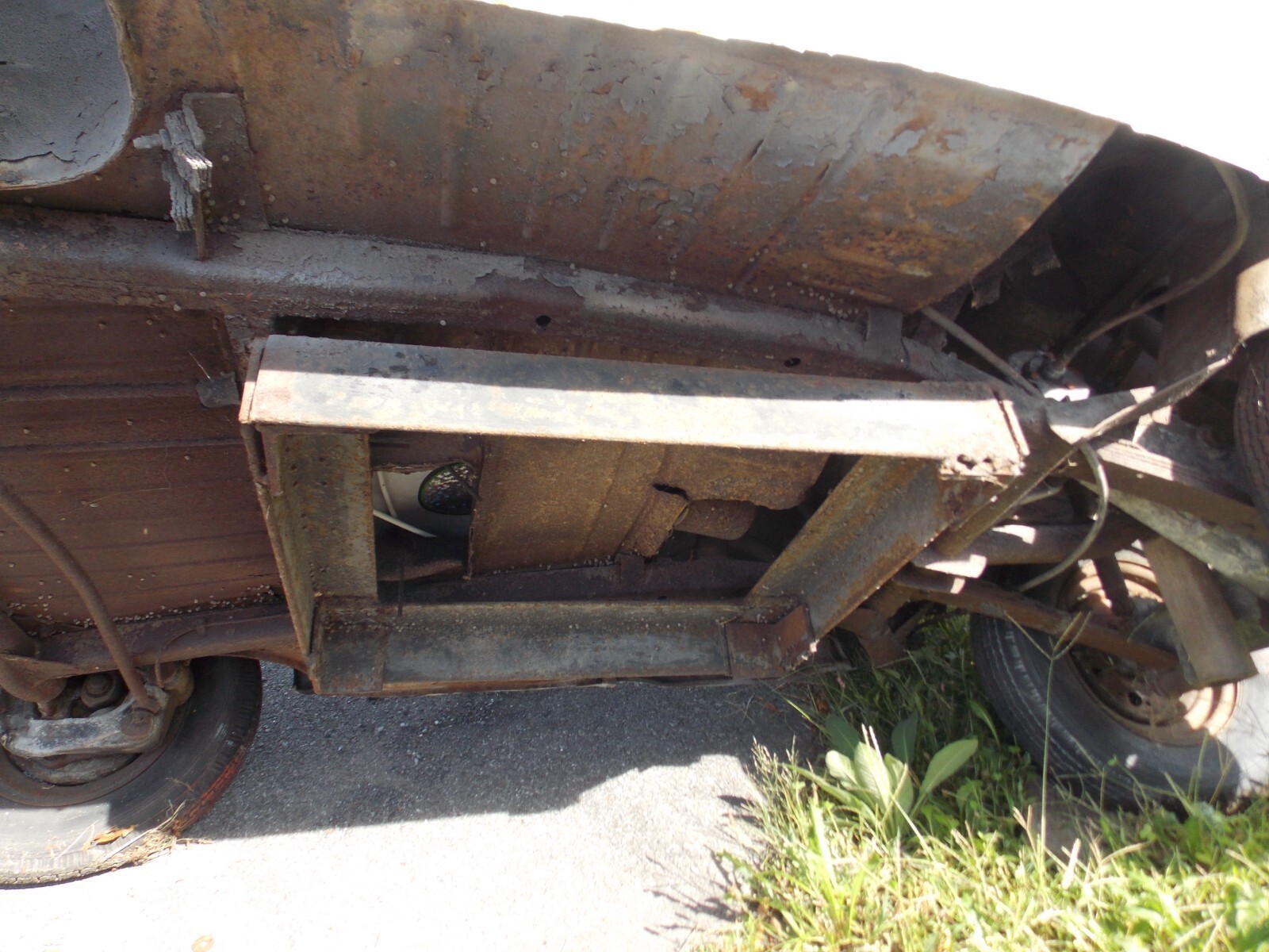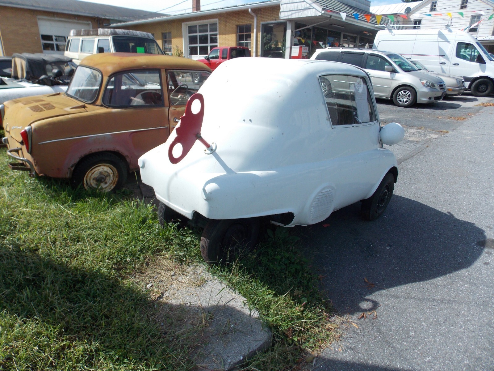 1957 BMW Isetta 300, CabrioletThe Sunroof opening and Back Glass/Soft Top have been covered with metal. The car was used as a sign on top of a pole. The body is solid and the panels to cover the sunroof and back glass can easily be removed.There is steel framework under the floor for the sign mount. This was well built and can be removed without cutting into the body. It is painted White. Side Glass is in the car, Windshield is broken.The trans is in place. The engine is apart in boxes and will need a complete rebuiltThis is a good solid body. The covers over the sunroof and back window can be removed without cutting into the body.