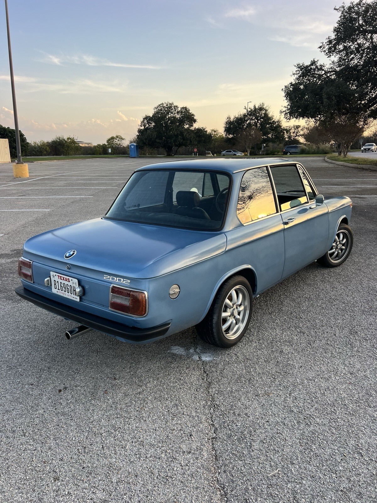 New rebuilt M20b25 (by Terry Sayther Automotive - 2002 specialist in Austin)conversion with 5 speed transmission and short throw shifter, new paint to original Fjord Blue with added “smoke metallic”, euro signal lights added and side marker lights deleted, Delete all body chrome trim and side molding, welded and sealed, front bumper delete, euro fiberglass rear bumper, Porsche Corbeau seats, center console delete, Momo prototypo steering wheel, fuel pump kill switch wired to “rear defroster” as secret ignition, all new gaskets at all openings, all new brake lines, new fuel pump, battery relocate to trunk, new sound proofing, new carpet kit, new headliner, new door panel backing reskinned, new period correct side mirrors, and soooo many other little touches.Enjoying the 165 ish HP and 5 speed driving!Fires up, runs smooth and is so much fun to drive!