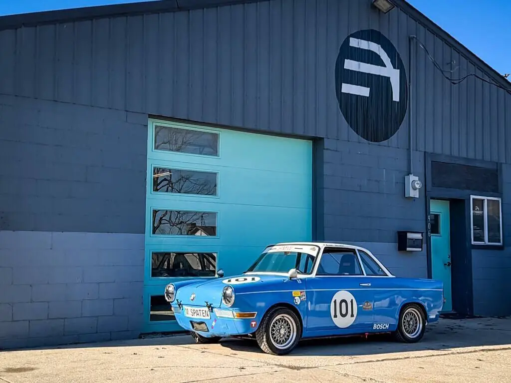 1961 BMW 700 Sport Coupe - 18k kilometers, finished in a two-tone blue & white over a stripped black interior, runs and drives great. This example was built in 2018 by Porsche Werks driver and Aircooled Porsche specialist Klaus Selbert for hill climb racing. Power comes from a high-compression VW flat-four paired with a four-speed VW manual transaxle. Induction is handled by dual Weber 44 IDF carburetors, while additional equipment includes an electric fuel pump, a 5-gallon ATL fuel cell, A-1 headers, a Supertrapp muffler, and a front-mounted oil cooler. It was never raced and features low hours on the build.