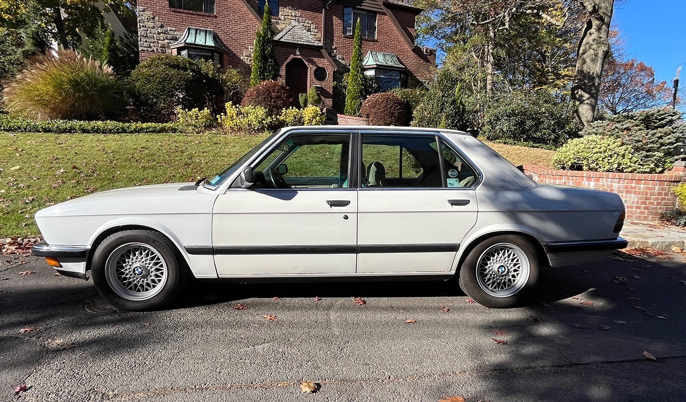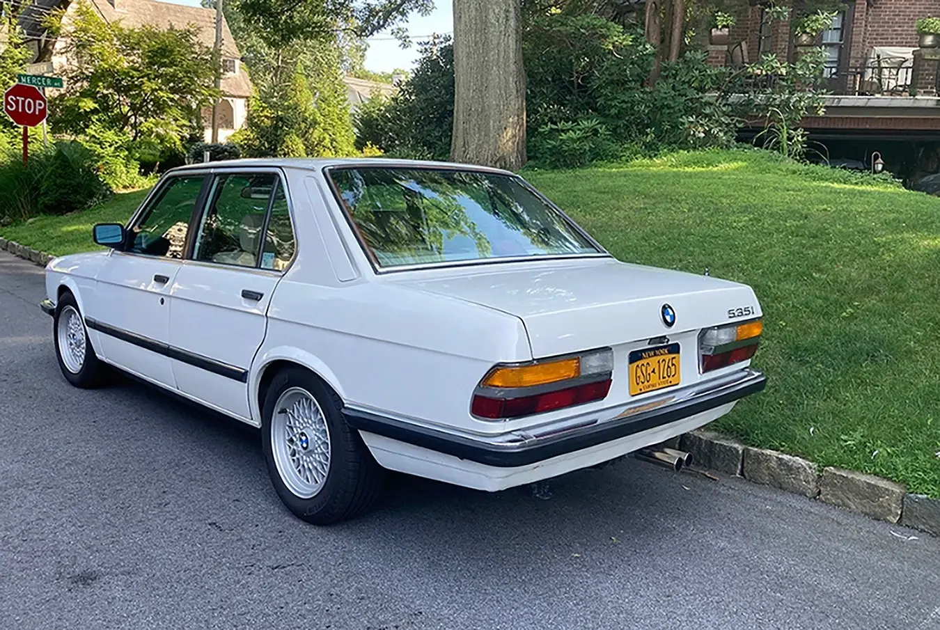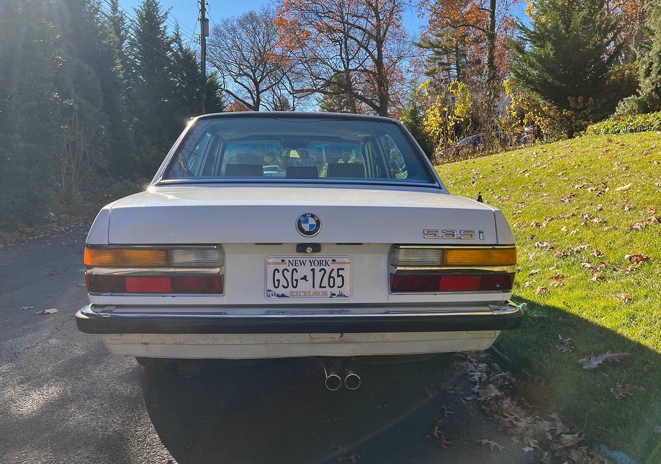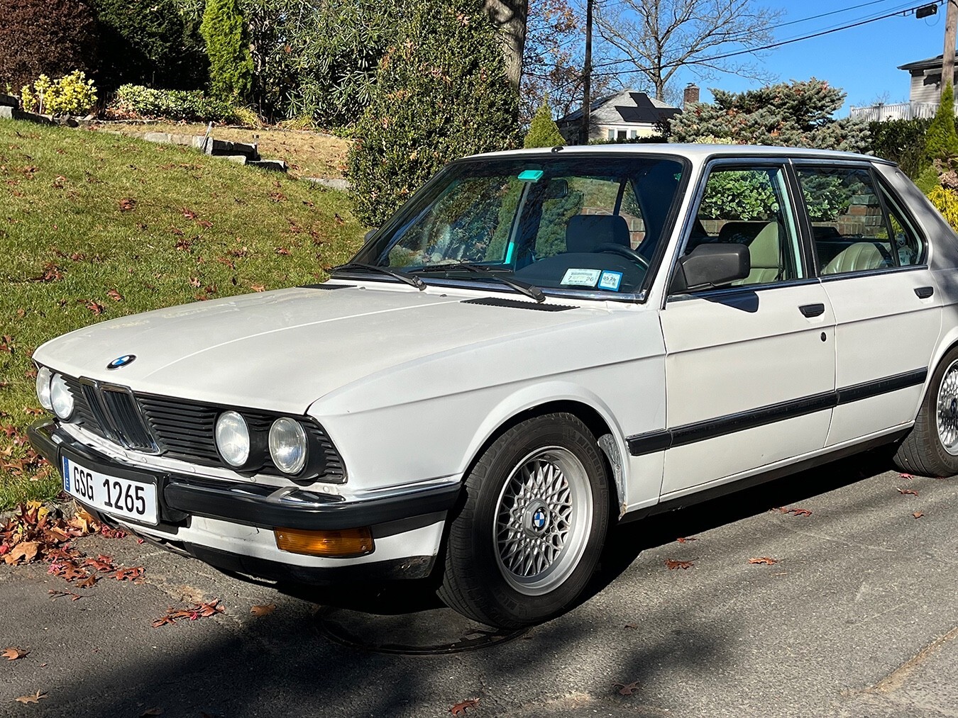 This is a 1988 BMW 535i in Alpine White over Beige Leather interior with the euro bumper conversion. It has the 3.4-liter M30B34 inline-six mated to a 5-speed manual transmission. The dashboard has some cracks, as often seen with these older classics. The onboard computer stopped working last year and the tachometer and odometer stopped working 5 years ago. It has a clean Carfax and clear title and is in New York.
