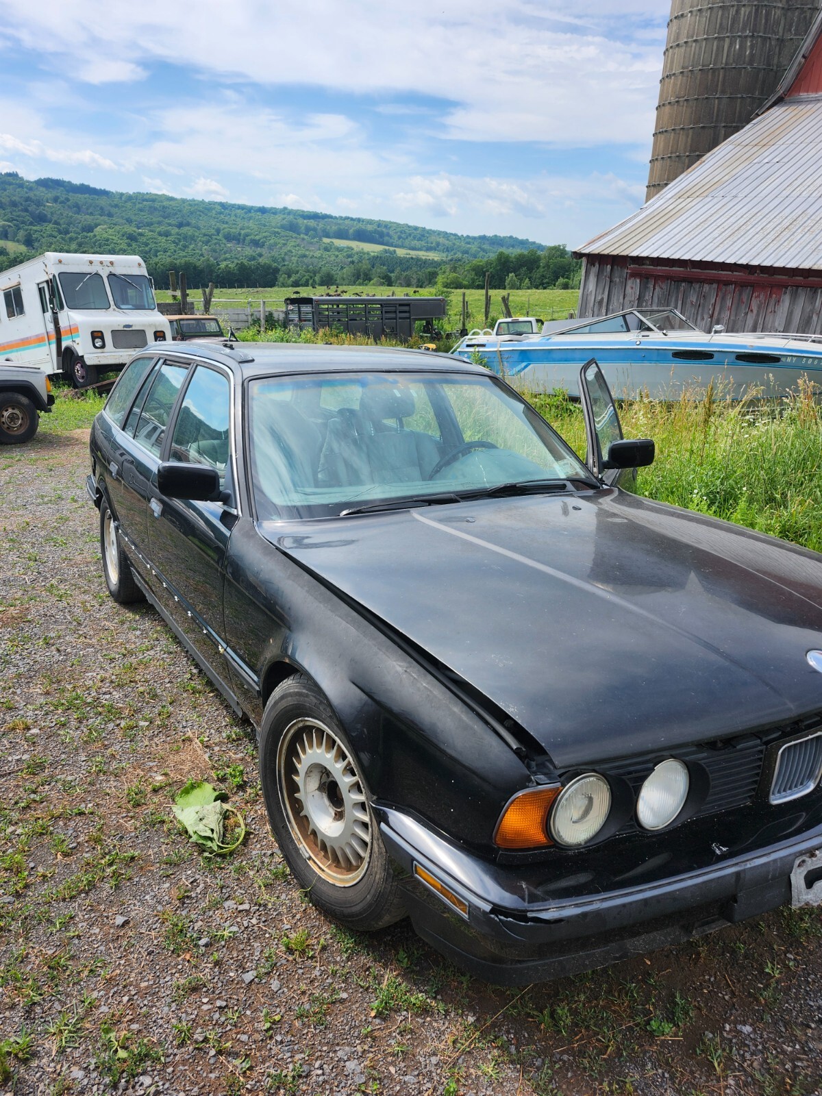 1999 BMW 525 i touring (wagon) for restoration or parts 149,000 miles, good motor, fires w starter fluid. Needs crank position sensor. Was daily driver until injectors stopped. Started pulling it apart to replace sensor but lost interest. Sensor included has, NY Title. No warranty, as is. For parts or restorationPickup only, bring a trailer. Pickup within 2 weeks of purchase, payment with in 5 days from winning bid. Good rubber, gonna need brake work from sitting. Cracked windshield, broken head light, broken tail lights, dents, rust...it has it all... needs lots of tlc but good rare project. Can help load w my farm tractor.