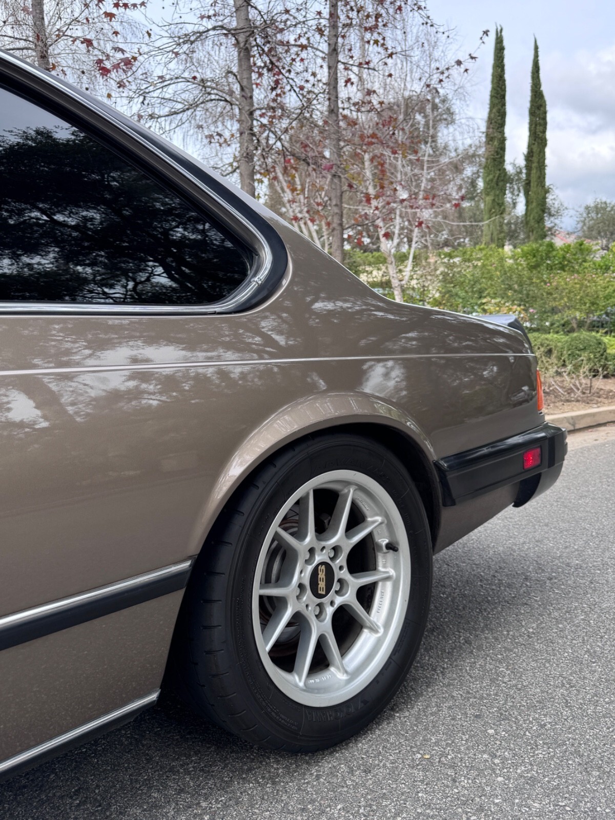 While the vehicle remains in as original condition as possible, a few tastefulyet very enjoyable upgrades have been made. This E24 classic has been installed with H&R lowering springs (Made in Germany) and also upgraded performance shocks. All of the bushings have gone through on this vehicle. You will not hear any unnecessarynoises coming from the suspension, it rides extremely smooth and planted when being enjoyed going through a nice canyon road. The vehicle touches grounds on the iconic and authentic BBS RK007 wheels measuring 16x8 on all four corners with a 15mm offset. The wheels are wrapped with brand new Yokohama Advan AO52 tires in the 245/45/16 size. (used only for 200 miles) They are a perfect fit as they do not require any spacers and or adapters. They provide such an enjoyable ride and keep the car planted while going through the turns. Last but not least, paired with the stance of the suspension and the BBS wheels, this BMW is the gentlemen's E24 that you can take to a car show and win an award, then enjoy the ride home on your favorite driving roads. This E24 will allow you to enjoy both, it is a very well sorted example that ;makes you addicted to driving it as much as you can.