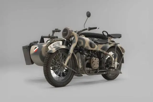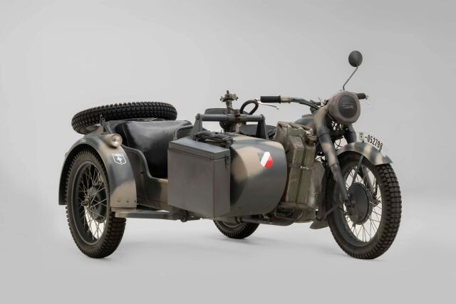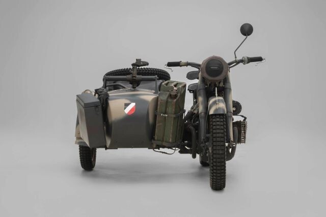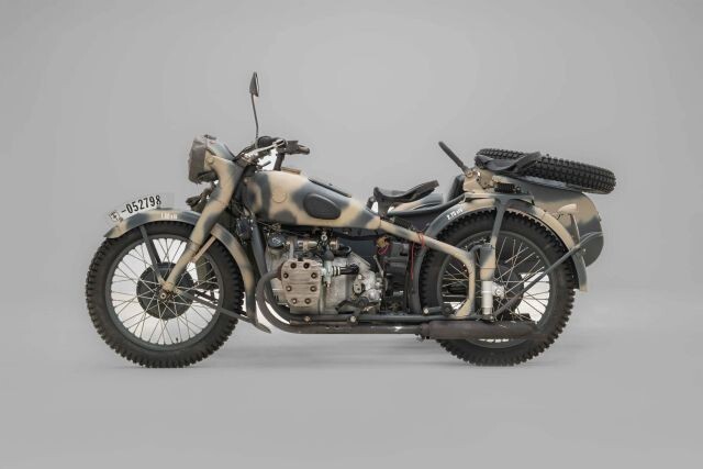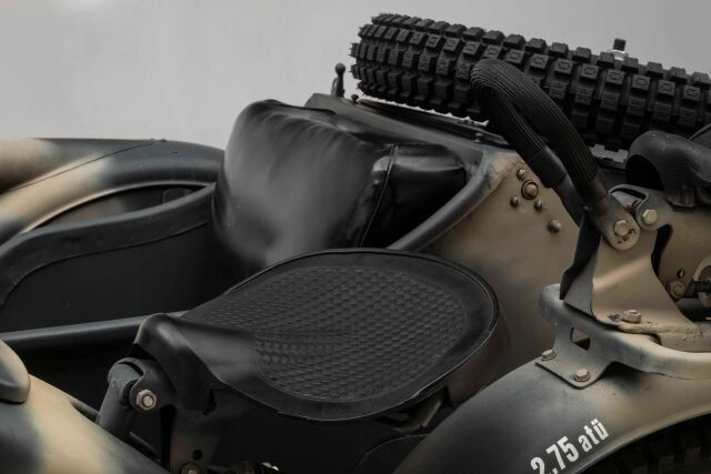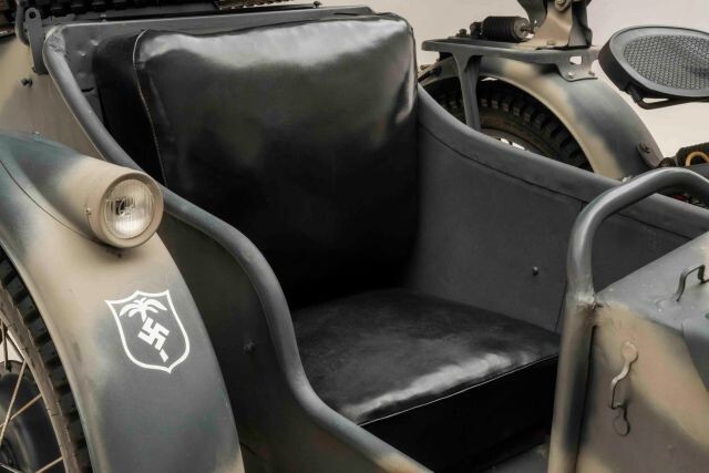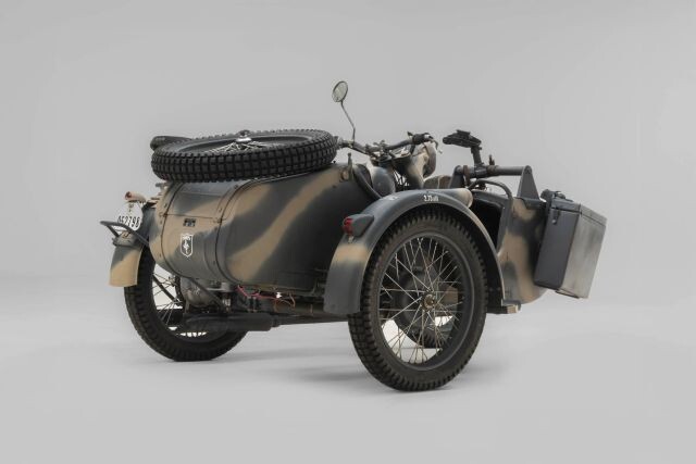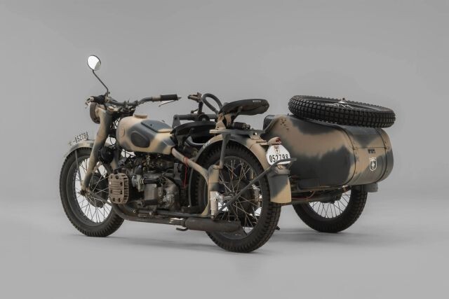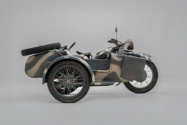 Debut Year of The BMW R75 Wermachtgsespann. Born in the Eisenach Factory Prior to It's Closing in 1944 Due To Allied Bombing, and Presented For Your Consideration. Complete With Accessories, This Example is Finished in Stealth Two-Tone Camouflage Paint and Afrika Korps Livery. Showing 525km on Original Veigel Speedometer.
