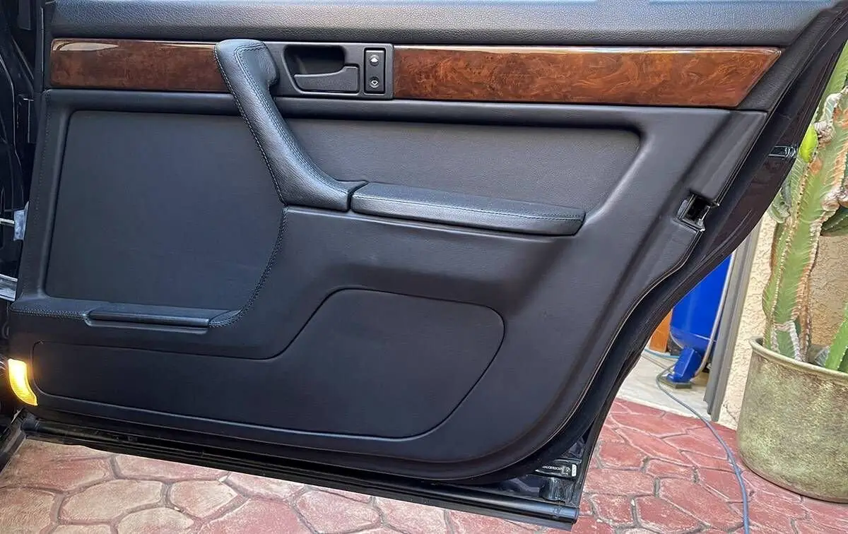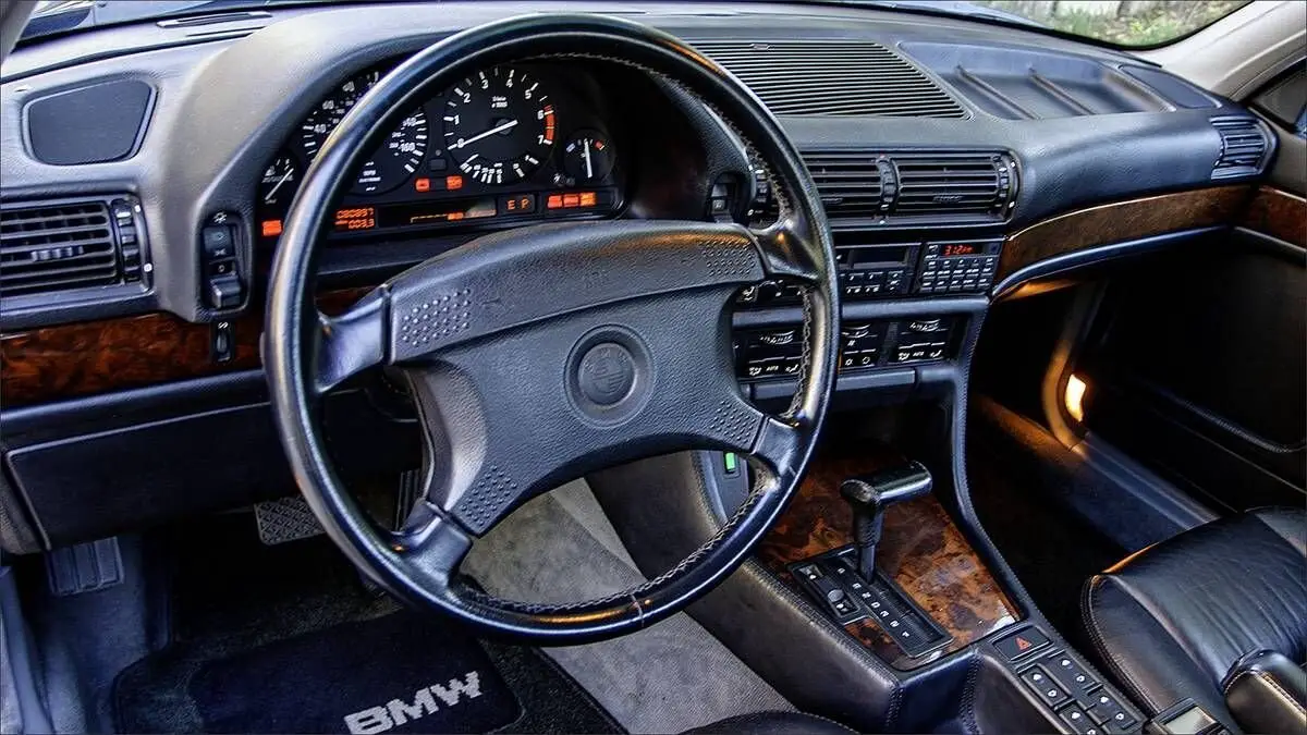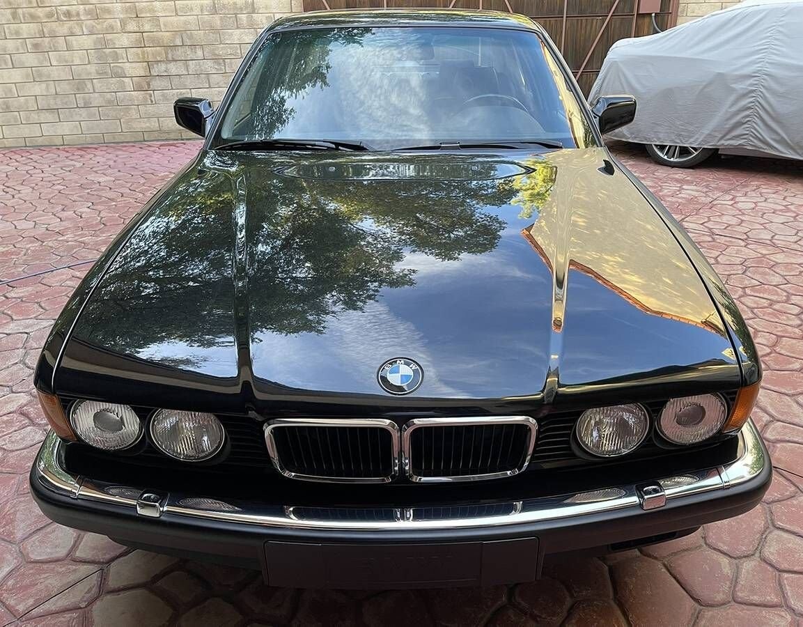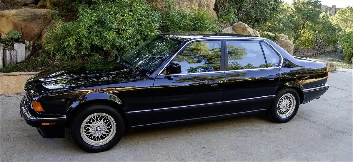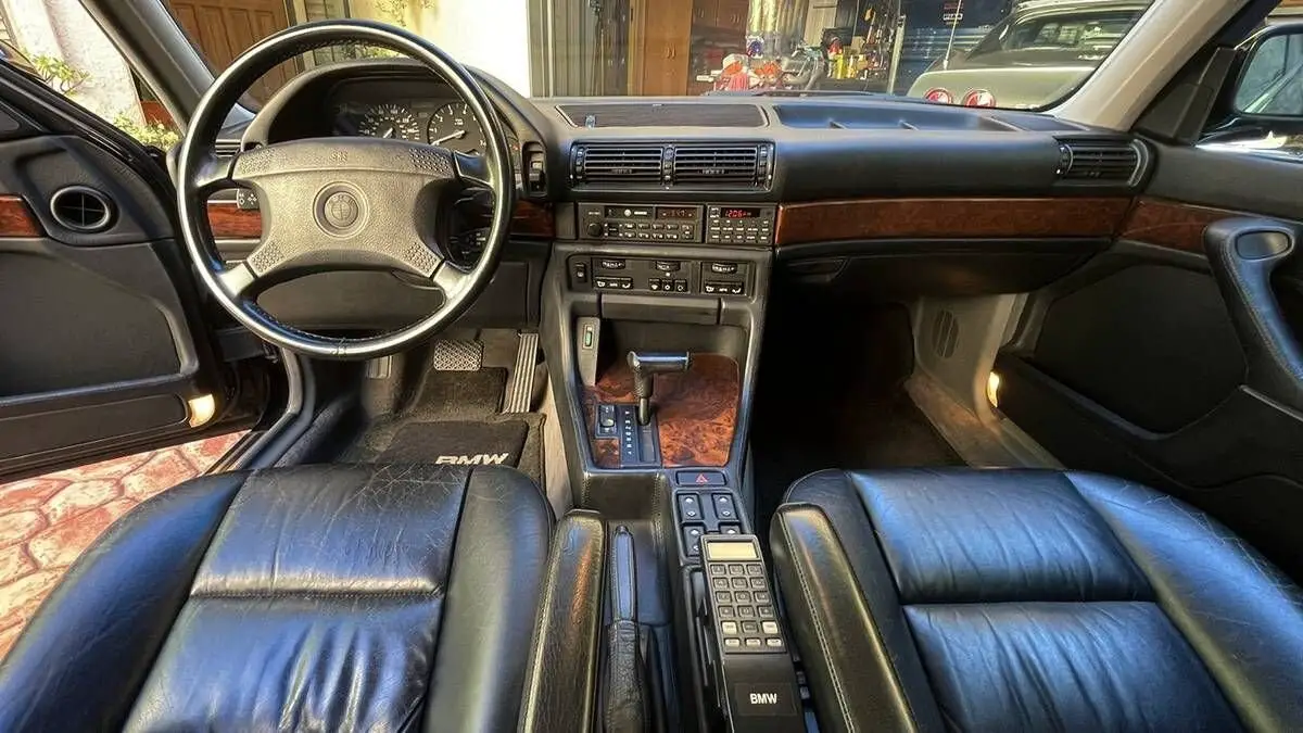 This 1990 BMW 750iL is an all-original black-on-black California car. The seller states ownership from 1992 to 2026 and notes the car was stored from 2005 to 2025. The exterior presents very well in black paint with strong shine and clean body lines. The interior appears exceptionally well preserved with black leather seating, clean carpeting, and well-kept wood trim throughout. The seller states the car still has a new car leather smell inside. Recent maintenance includes replacement of the engine belts, filters, thermostat, water pump, fuel pumps, master cylinder, power brake assist, brake pads, and rotors. It is described as clean and accident-free and comes with a clean California title.