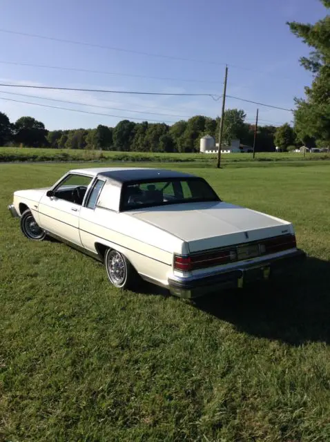 I have cleaned and detailed. The interior is immaculate. The vinyl top, weather strips, carpet look new. Runs excellent. No rattles or any noises. AC has been converted and is ice cold. Power windows, locks, tilt wheel, delay wipers, cruise control, power seat and am/fm stereo all work. The underbody is as clean as the top. As you can see it will need right front bumper filler and the typical headliner that is sagging. I installed buick wire wheel covers and the originals are in the trunk. I installed new tires. It had the original. All the glass is flawless. I would not be afraid to drive this car anywhere.”