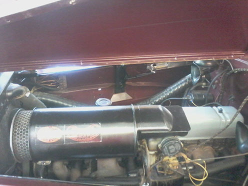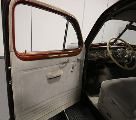 The interior was designed for the owner/driver, not a chauffeur, so you have lots of space for the family, comfortable gray broadcloth upholstery…a tasteful look. All the upholstery was new when the car was restored and today shows beautiful. The lovely wood grained dashboard and garnish moldings are actually painted steel and the instrument panel's gorgeous engine-turned panels are in excellent condition. The massive truck has a new carpeted mat. It is big enough for a two-week vacation with the whole family.