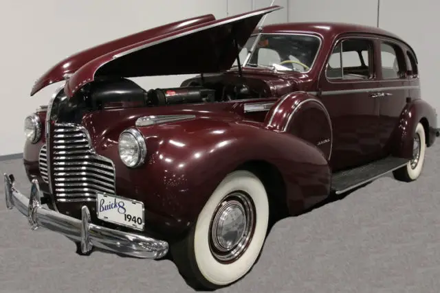 Restored a few years ago (have documentation & photos), the 80-Series cars were the second-largest in Buick's lineup in 1940, exceeded only by the gargantuan 90-Series limousines. Sidemounts appeared for the last time, and the 80-Series cars were the only ones big enough to carry them gracefully, so they look fantastic, giving the car an old-world elegance that would vanish in the jet age. The burgundy paint is exactly the right choice for a formal car like this, handsome, but not flashy and always timeless; so you'll look as good driving this car in 20 years as you do today. All four doors open and close with a reassuring solidity that only an old car can deliver and the view down that long, long hood is worth the price of admission all by itself. Chrome and stainless trim can be insanely expensive to restore on one of these cars, so you'll be relieved to know that it's all in very good condition, especially the pot-metal grille and parking light housings, which are always the first to show pitting. This is a real beauty.