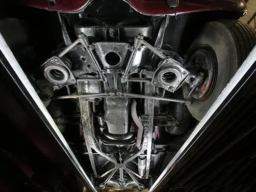 Buick's 320 cubic inch straight-8 engine made 140 horsepower in 1940, which was quite a bit for 1940. But where the big Buick really works well is torque, and this big sedan will crawl along at idle in high gear, nearly silent, and accelerate smoothly without bucking. That's torque working for you. The detailed engine sports a proper air cleaner, 2-barrel carburetor, and "Dynaflash" decals on the valve cover. You'll also note the cold air hose, the factory oil filter, and twin horns up on the firewall. It starts easily and has a wonderful eight-cylinder exhaust note that's uniquely different from a familiar V8. The rebuilt 3-speed manual transmission (performed on 11/8/16) shifts easily and has light clutch action and the suspension feels buttoned-down and the ride is superlative. Manual drum brakes are reasonably powerful and you'll be shocked by just how clean this car is underneath. New, big 16-inch Lester wide whites give it that old-school look that everyone loves.