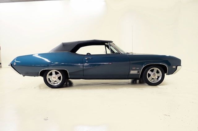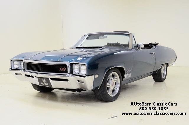 STK 2117 1968 Buick GS400 Buick entered the muscle-car fray in 1964 with the GS400 s dressed-up version of the compact Skylark. It was powered by the 401ci Buick nailhead V8. This engine was unique to the Buick line with very small valves and a high lift camshaft. The design had been around in various configurations since 1953. They made a lot of torque but not high RPMs - not exactly a muscle-car engine. In 1967 Buick introduced an entire new line of performance engines. This 1968 GS400 convertible is powered by a matching-numbers 340bhp version of the new 400ci engine backed by a GM three-speed hydramatic. The current owner has had the car for the past 11 years and it has been well cared for. The body was repainted GM Aqua Teal Metallic in 2003 and the original black vinyl interior is in very good condition as is the power operated top. This GS400 came with a lot of standard and optional equipment including: power steering power disc/drum brakes A/C tinted windows tilt wheel and AM/FM/cassette stereo. Nice radial tires are mounted on '92 Camaro alloys with Buick GS center caps - very sharp. This is a luxury performance convertible that will get the job done. Buick advertised a 0-60 time for this car to be just under 7.0 seconds. That's a muscle car. Call 800-650-1055 or visit for additional information. ALL VEHICLES SOLD AS IS.