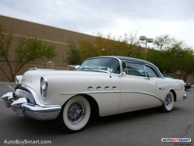 Beautiful two tone Arctic White with a Ranier Blue roof and matching Ranier brocade interior. Incredible condition car from California with only 39,000 original miles. First place winner at the 53rd annual Lake Forest show hosted by the AACA. These Roadmasters were the top of the line Buicks in the 1950's. The waterfall grille, bumpers and stainless steel trim are all in spectacular condition. Door flippers work great on both sides. The exterior is complete with real wire wheels and wide white wall bias ply tires. The interior also shows spectacular in it's original Ranier Blue brocade cloth. The original seat foams are still supportive and firm. The dash remains in excellent condition and all instruments work properly. The 4-way power front seat operates quickly in all four directions. The trunk remains in excellent condition with the correct spare and jack assembly. Under the hood is a very clean and detailed engine compartment that is home to the original 322cid fireball V8 engine. This engine is original and stock. It starts right up with no smoking, no leaks and no noise. It idles very smooth and runs excellent on pump gas. The Super Turbine automatic transmission shifts smoothly with no issues. The factory rear differential is equipped with a 3.41 gear to provide cruises comfortably at 70mph. This is an incredible original Buick Roadmaster Riviera that will bring plenty of enjoyment to the new owner.