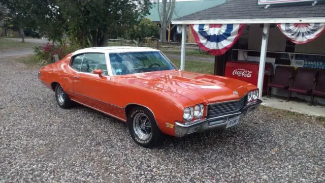 Yes, Buick "Sun Coupe" found in an actual barn! I'd love to call it a "barn find" but this was actually the owners garage. Still pretty cool. Bottom line is that the car is a 1972 (only year made) Skylark Sun Coupe. If you're a Buick guy, then this is a must have for your collection as they are very hard to come by. The entire center section of the roof manually retracts back. Car has a 350 4 barrel with automatic tranny. Absolute pleasure to drive and is constantly turning heads. Runs and drives beautifully. Unfortunately the previous owner hit the side of the barn one day while pulling car in. I had the damage assessed to the tune of $3000 bucks. A really nice Sun Coupe brings low to mid 20's so my price reflects the body repairs. The car was repainted about 12 years ago but still looks great. Color is original. Interior is in great condition. Car has 61K miles but I can't verify that's the original mileage. The Buick "drives like a Buick" meaning smooth, luxurious and powerful. Great investment car for the collector.....for me, my wife wants her garage space back! feel free to call me with any questions, Jay 860-841-4921