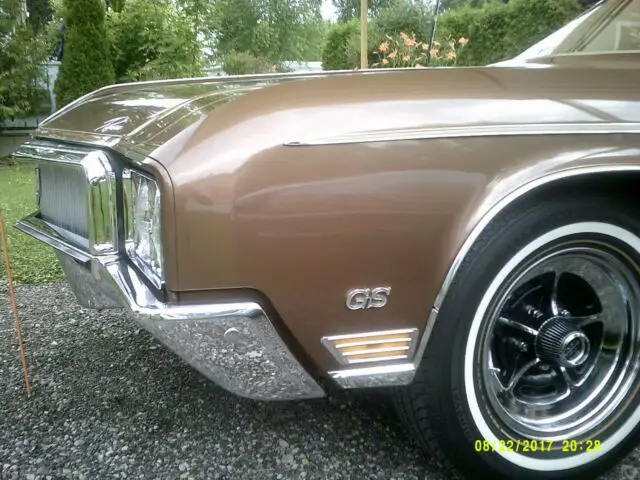 Optional equipment : GS model ( 1 of 3505 made )which included the 3:42 posi - trac rear axle ratio and a ride and handling package : Buick floor mats and trunk mat with the Buick tri-shield emblem : side sweep spear : bucket seats ( power ) with center floor consul and floor shift : rare Canadian model rear window blower defroster with dash mounted high/low switch : rare three note trumpet horn ( underside hood mount ) : passenger door Buick tri-shield rear view mirror : rare trunk mounted walk around trouble light : under dash mounted Buick tissue dispenser : Uniroyal Royal Seal tires with white and gold side walls mounted on chrome road wheels with Riviera center caps ( including new spare - never been used ) : after market cruise control : sport steering wheel .