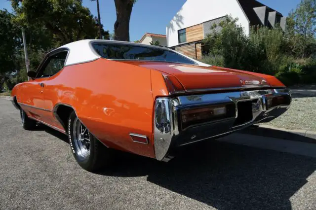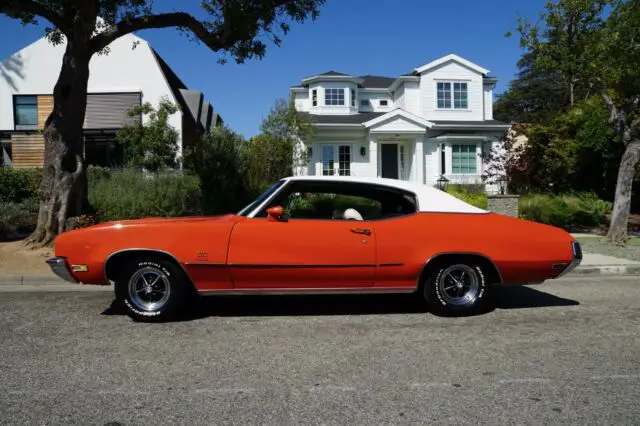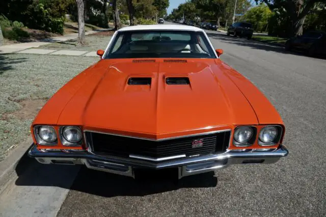 1972 Buick GS Hardtop Sport Coupe. Rust free, original numbers matching GS 350/4bbl engine, TH/400 automatic transmission, positraction rear end with a 3.42 gear ratio, dual exhaust. Sold new at Renney Motors of Stockton, CA June of 1972 to its first long time California original owner with all the documentation including the original dealer invoice, sales receipt, window sticker, protecto-plate, build sheet, manuals & warranty information, dealer brochure, original owners first registration & a stack of many that followed, all kept nicely in a three ring binder. This Buick GS has had one repaint in 2015 in the original factory Flame Orange paint.
