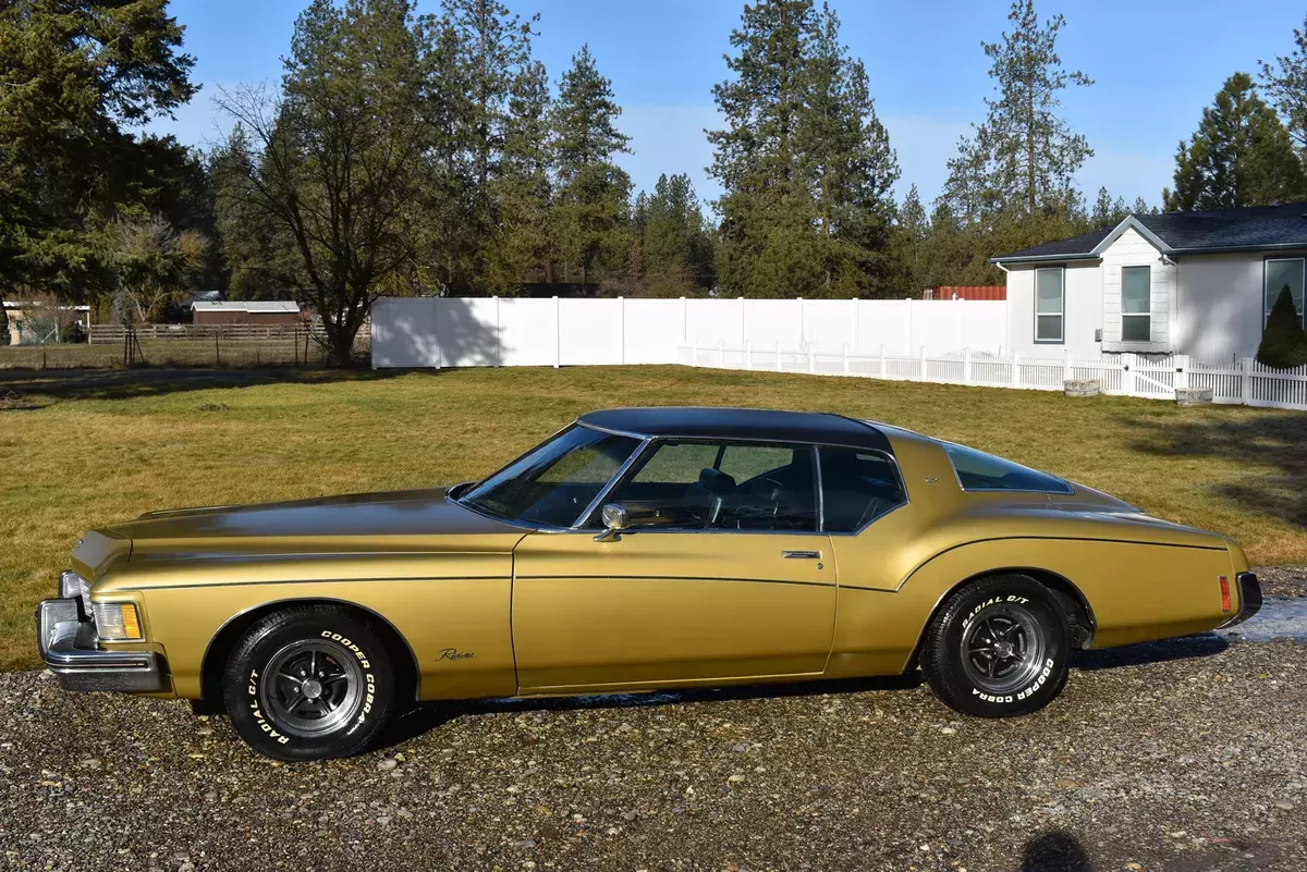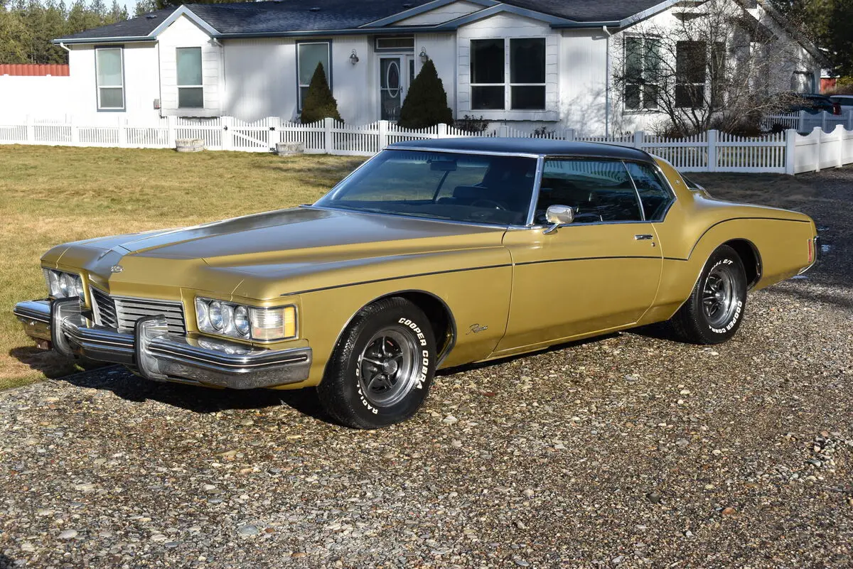FEATURES AND OPTIONS: 455 V8 7.4 LITRE POWERPLANT 4 BARREL CARB DUAL EXHAUST AUTOMATIC TRANSMISSION TURBO HYDRA-MATIC 400 3 SPEED AIR CONDITIONING POWER STEERING POWER BRAKES W/ FRONT DISCS POWER SEAT POWER WINDOWS POWER TRUNK SPEED ALERT TILT WHEEL AM-FM RADIO FACTORY RALLY WHEELS NEW COBRA ALL SEASON WHITE LETTER TIRES CORNERING LIGHTS WHITE LETTER TIRES SPARE AND ALL ACC IN TRUNK FOR CHANGING FACTORY MANUAL INCLUDED ****************************************************************************************** LAST YEAR OF THE RIVIERA. THIS IS A NICE EXAMPLE AND DRIVES GREAT AS WELL. CALIFORNIA OWNED. CURRENTLY HAS LIFETIME WASHINGTON COLLECTOR PLATES THAT GO WITH THE VEHICLE. GREAT CAR TO INCLUDE IN YOUR COLLECTION!PICTURES WERE TAKEN ON FEBRUARY 26, 2025