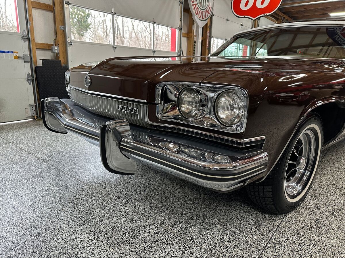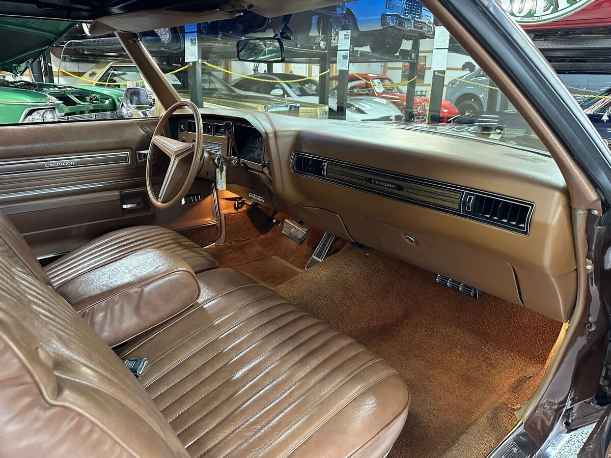 Dressed in a rich brown exterior that has been meticulously wet sanded and buffed to a stunning luster, this Centurion commands attention from every angle. The deep, mirror-like finish accentuates the car's graceful yet bold body lines, while the saddle vinyl interior invites occupants into a world of classic American comfort. The split-bench front seat, complete with an automatic transmission shifter on the column, speaks to the practicality and ease of driving that Buick prioritized. The dashboard remains in perfect condition, a rare sight in a vehicle of this era, and the interior as a whole presents beautifully, with all trim and upholstery showing minimal wear.
