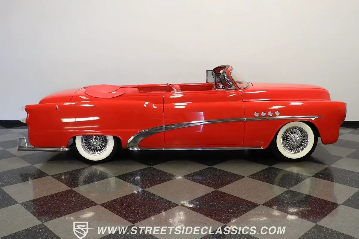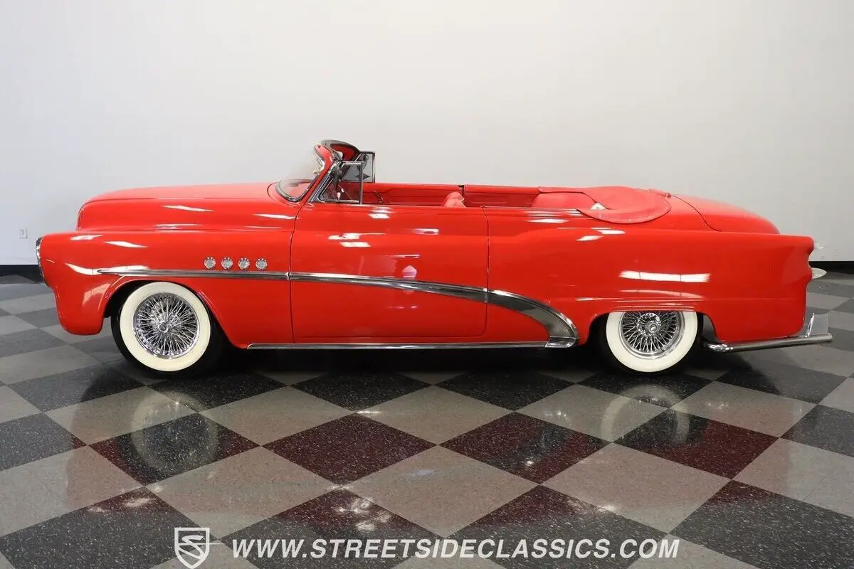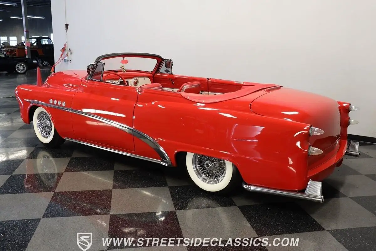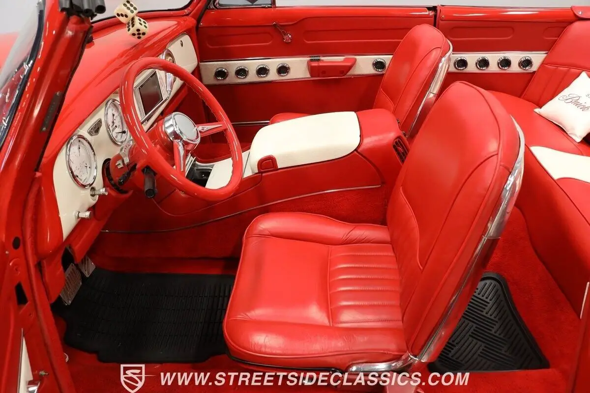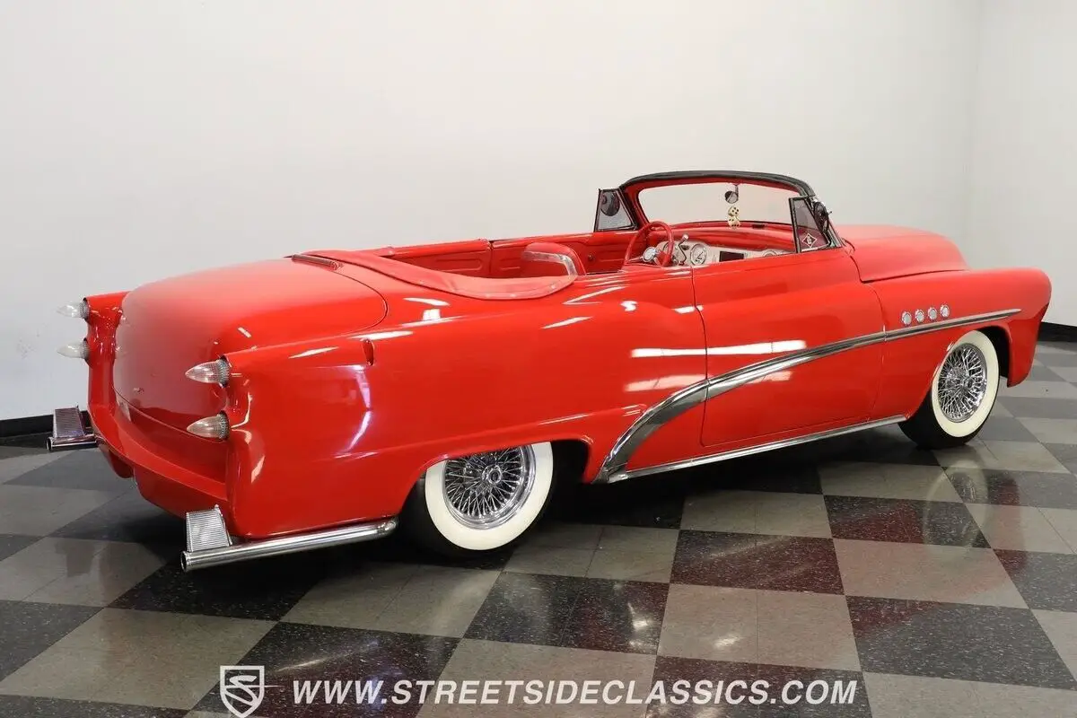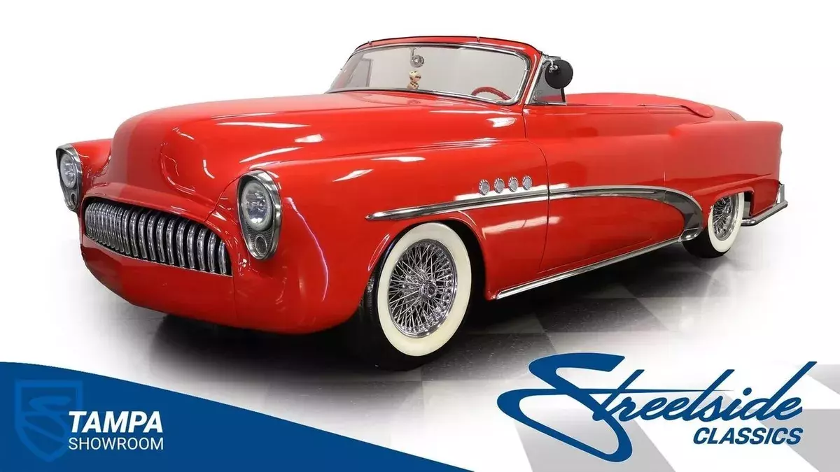 Vehicle Original VIN : 170590164713-TPA 1953 BUICK SPECIAL CUSTOM ROADSTER HIGHLIGHTS: • 350 V8 engine (from 1993 Buick Roadmaster) • Throttle body fuel injection • 700R4 4-speed automatic transmission • Power steering • Power front disc brakes • Dual exhaust with turbo mufflers • Custom air breather • Torch Red paint • Chopped windshield • Deleted front and rear bumpers • Bullet-style tail lights • Custom clear headlights • Frenched license plate and antenna • Added third brake light • 15" Dayton wire wheels in 205/75R15 tires • Shaved door handles with electric poppers • Removable Carson chopper fixed soft top (for show use) • Red and white two-tone leather interior • Bucket seats • Custom dash • AutoMeter gauge cluster • Aftermarket steering wheel with tilt column • AM/FM/AUX stereo with DVD player and navigation • Rear headphone jacks in center console • Custom pillows on back seat • Air conditioning (will need servicing to blow cold) • Binder with receipts • Electric door poppers (driver door/trunk) • Gas cap integrated into right lower tail light • "Custom Vehicle" brand on Florida title