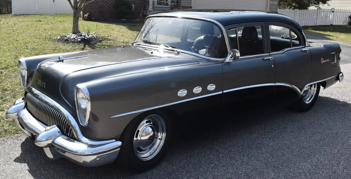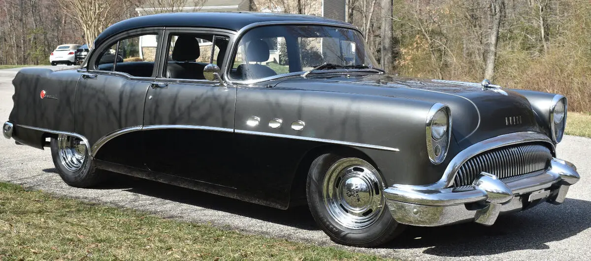 [isdntekvideo]1954 Buick Special Resto-Mod powered by a Chevrolet 350 cu. in. crate motor, backed by a 700R4 4-speed automatic transmission, and put to the pavement with a 9” Ford rear differential with 3.55:1 pos-traction gears. Yes, it is a 4-door sedan.