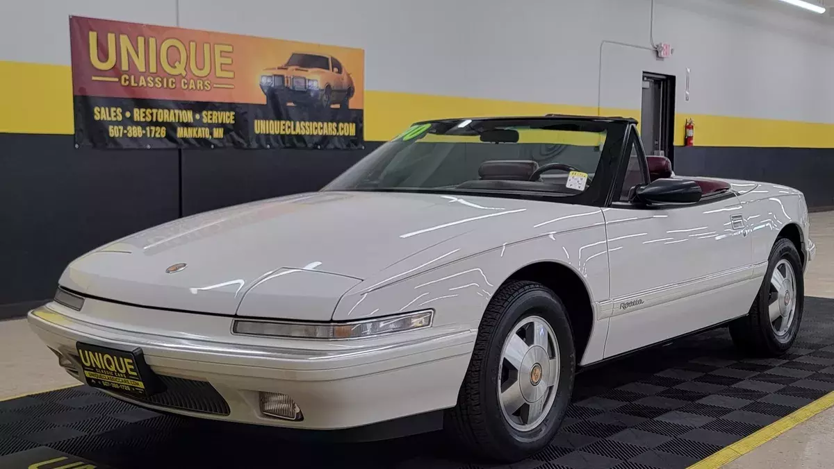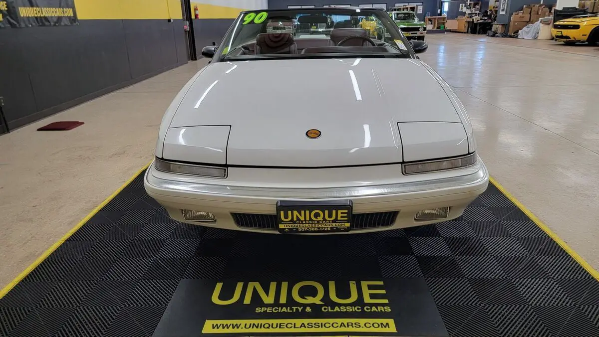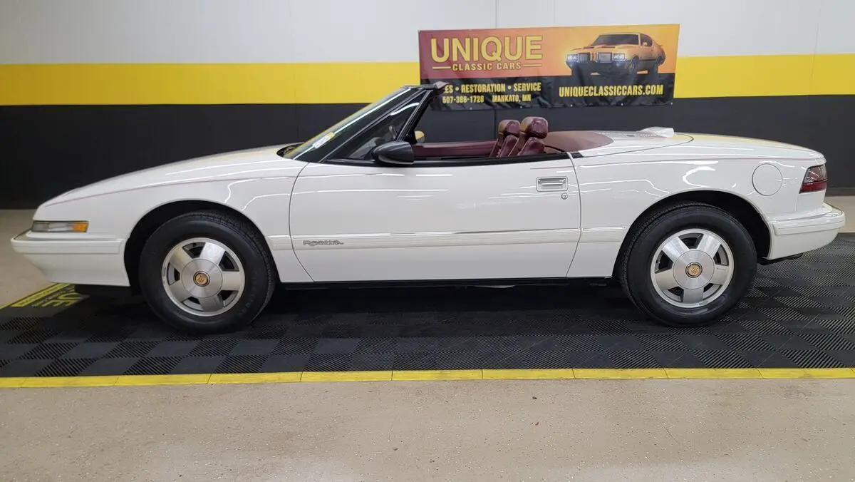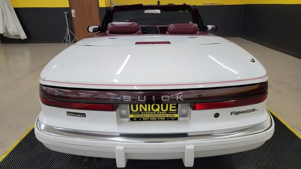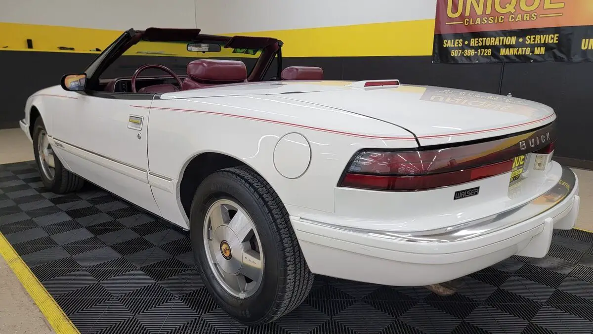 1990 Buick Reatta Convertible in White paint with red pinstripe. This one has a clean carfax, no accidents indicated and 32,881 actual miles! 3800cc V6 (3.8L) under the hood that is paired up with an auto with overdrive transmission. Equipped with power steering, dual power seats, power mirrors, power windows, power locks, power brakes, and a/c. A/C has been converted to R134a but will need some attention. Flip up headlights recently got new motors and are working. Riding on Reatta wheels with Firestone radials. Burgundy leather bucket seat interior with center console. Manual convertible top fits as it should. Brakes are 60% in the front and 90% in the rear. Radio works!