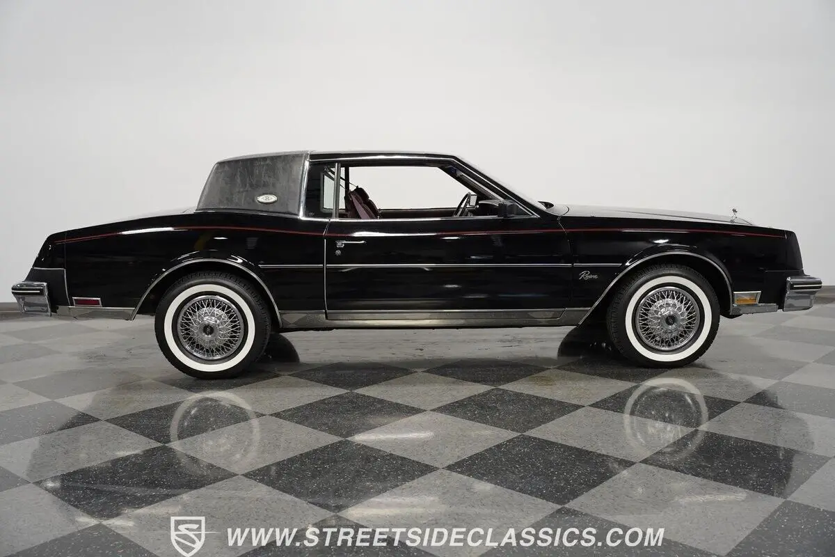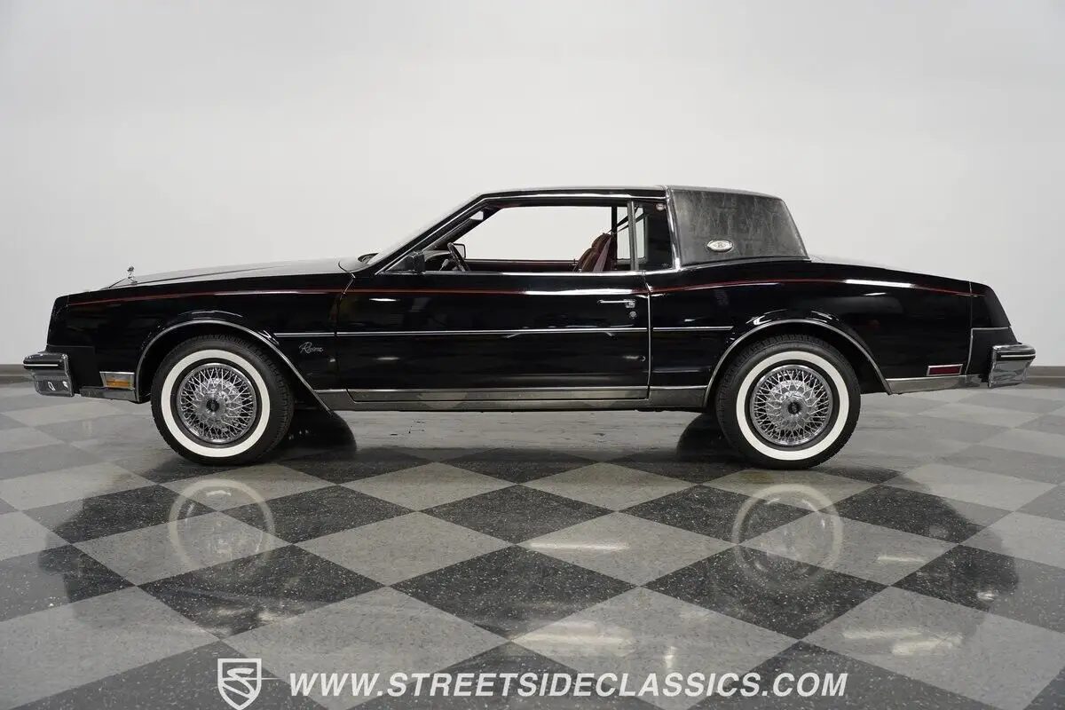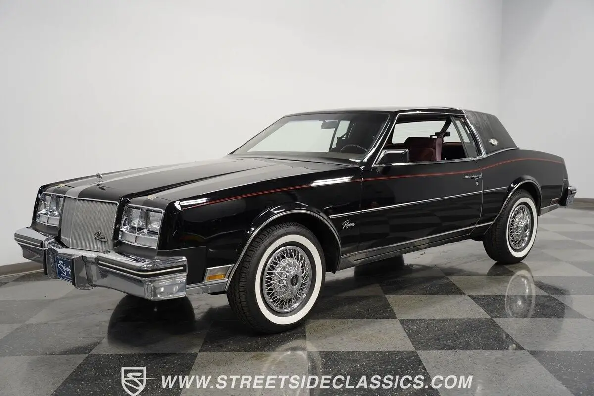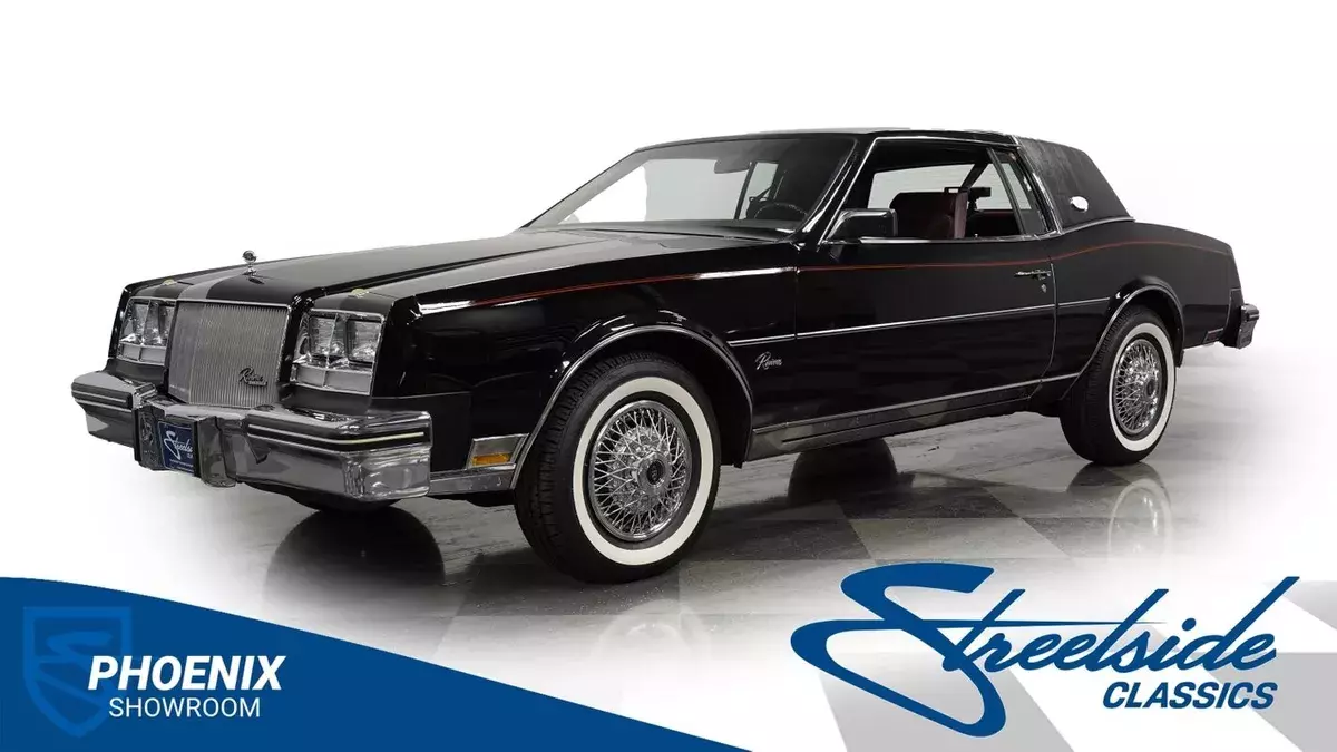 4083-PHX 1985 BUICK RIVIERA A genuine one-owner masterpiece with only 32,865 actual miles, this 1985 Buick Riviera blends high fashion with advanced technology. The sleek black exterior channels pure eighties opulence, accented by an elegant black half landau top and bold red pinstripes. Advanced for its era, hidden directional lamps illuminate within each front fender during nighttime turns. The refined silhouette rolls on 15-inch steel wheels with deluxe wire covers and 225/75R15 whitewall tires, creating a distinguished road presence. The rich dark red cloth interior radiates pure 80s luxury grandeur. Generous bench seating welcomes occupants into a world of comfort, while authentic wood trim adorns the dashboard with sophisticated detailing. The thoughtfully designed cabin arranges the shifter on the column for effortless control, enhanced by power steering and factory air conditioning. The AM/FM cassette stereo system brings crystal-clear audio entertainment. A potent 5.0L V8 links to a responsive 4-speed automatic transmission, channeling power through an advanced front-wheel-drive layout. The refined suspension combines independent front torsion bars with rear control arms and coil springs, complemented by self-leveling air shocks. Sharp handling comes via power disc brakes, while the electronic Rochester Quadrajet carburetor optimizes performance. HIGHLIGHTS: • 5.0L V8 Engine • 4-Speed Automatic Transmission • Electronic Rochester Quadrajet Carburetor • Front Power Disc Brakes • Self-Leveling Rear Air Shocks • Black Paint with Red Pinstripes • Black Half Landau Top • 15" Steel Wheels with Wire Wheel Covers • 225/75R15 Whitewall Tires • Hidden Front Fender Turn Signal Indicators • Dark Red Cloth Interior with Bench Seats • Wood Trim Dashboard Accents • Column-Mounted Shifter • Power Steering • Air Conditioning • AM/FM Cassette Stereo • Complete Documentation Binder This 1985 Buick Riviera, a single-owner marvel with 32,865 actual miles, combines V8 authority, advanced features, and immaculate documentation into the ultimate American luxury coupe. Call today!