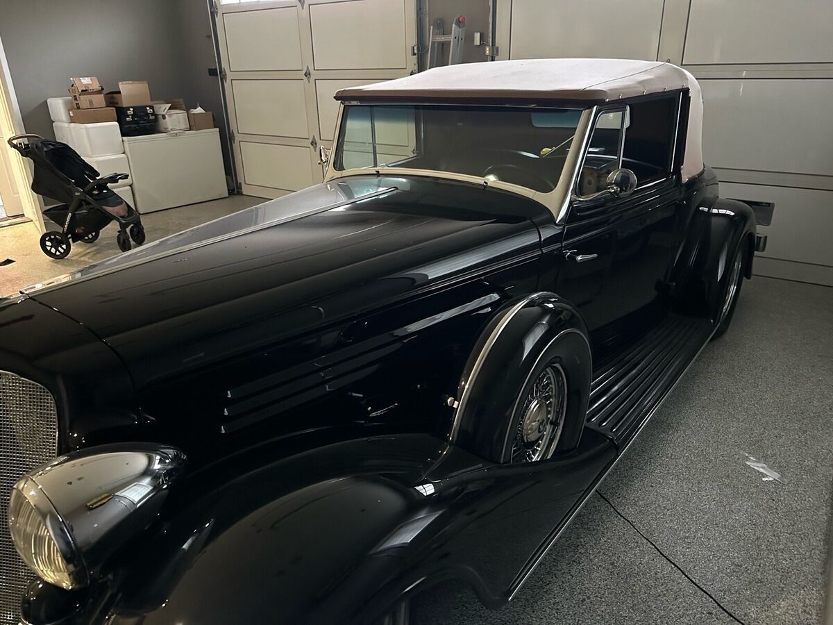 Model Year: 1935 Manufacturer: Buick Model: Convertible Engine: GM 6.0L LS1 V8 Transmission: 4sp automatic Current Odometer Reading: 2944 INTERIOR • Headliner: Good • Seating: Leather, nice • Dash/Control Panel/Steering Wheel: burled wood style refinish on dash very nice, dash redone by Juliano's • Door and Side Panels: Leather, custom stitched • Carpeting: Good EXTERIOR • Bumpers - Front: Excellent - Rear: Excellent • Front Grille/Fascia: Good • Trim and Emblems: Good • Cargo Area Trunk/Bed: Rumble seat in good shape • Engine Compartment: Clean, tidy installation • Frame and Floorboards: Solid • Paint and Body Appearance: Very nice black paint, nice trim, hood side louver trim currently off, needs to be reinstalled • Wheels: 17" Wheelsmith wires • Tires: Michelin 225/60/17 front and 255/60/17 rear Michelin radials with 75% + • Glass - Windshield: Good - Rear: Good - Left Side: Good - Right Side: Good