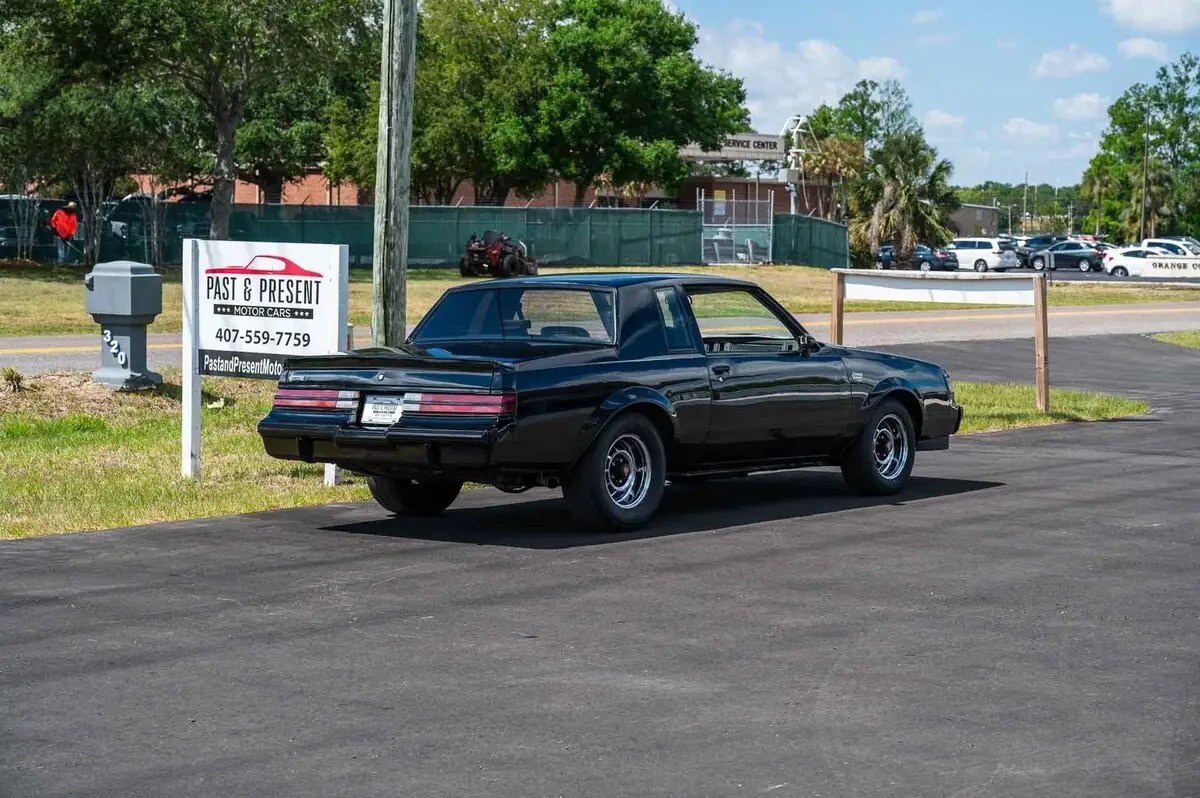 1987 Buick Regal Grand National WE2 1987 Buick Grand National, 3.8 Liter Turbo V6 Engine. The Iconic Dark Vader Buick! This GN is a very Original Unmolested car... One of the Last Grand Nationals off the assembly line. Build date was in November of 1987. It still retains its Matching numbers Motor, Transmission, and Rear end. Build sheet still attached to the door panel. Very well Optioned car with Power Windows, Door Locks, Seat, G80 Posi Rear and More... Exterior Original Black Lacquer Paint shows it age.. Enjoy as a Survivor or repaint as desired. What you see is what you get. It has a fairly straight and solid body.. Nothing covered up and hidden. Has some minor surface rust at some of the seam sealer areas as well as the back of the trunk lid. Floors and Trunk are Solid. Interior Very clean original Black and Gray GN interior with new headliner. Mechanical The original 3.8 Turbo V6 runs Great. Recently installed New Brakes, Shocks, Spark Plugs, Alternator, and BFG tires. A/C blows cold! The Original BRF Transmission shifts as it should. Summary With the Buick Regal Turbo Market getting out of reach for some this is an Affordable way to become an Elite member of the Grand National Family. While we do our best to provide the highest quality muscle cars with an honest and reliable description and realize the importance of transparency when selling vehicles. That being said, we have not built, modified, changed or personally owned this vehicle. Whether this vehicle is consigned or owned by Past & Present Motor Cars we do not know the vehicles complete history since new. We want to be clear and try to answer any questions our customers might have prior to purchasing. Additionally, we not only welcome but we encourage 3rd party independent inspections. Please inquire prior to purchase to make sure the advertised vehicle has not already been sold. We list our vehicles on multiple websites and a vehicle can sell at any time. If a customer chooses to purchase sight unseen (many of our customers choose this option) the customer accepts the vehicle AS IS and WHERE IS and understands we cannot address concerns after purchase. For this reason, it's important all concerns are addressed prior to purchase. We make every effort to present accurate and reliable information, but use of this information is voluntary, and should only be deemed reliable after an independent review of its accuracy, completeness, and timeliness. It is the sole responsibility of the customer to verify the existence of options, accessories and the vehicle condition before time of sale. Financing is Available with low rates and Vehicle Shipping is available from our Showroom to your Garage. A Classic Car Warranty is Available for Purchase from a 3rd Party. Please speak to our Sales Associate or Company Representative for more information. Our team is working and available anytime by Phone or Text for your convenience at 407-559-7759. Thank you for your interest!