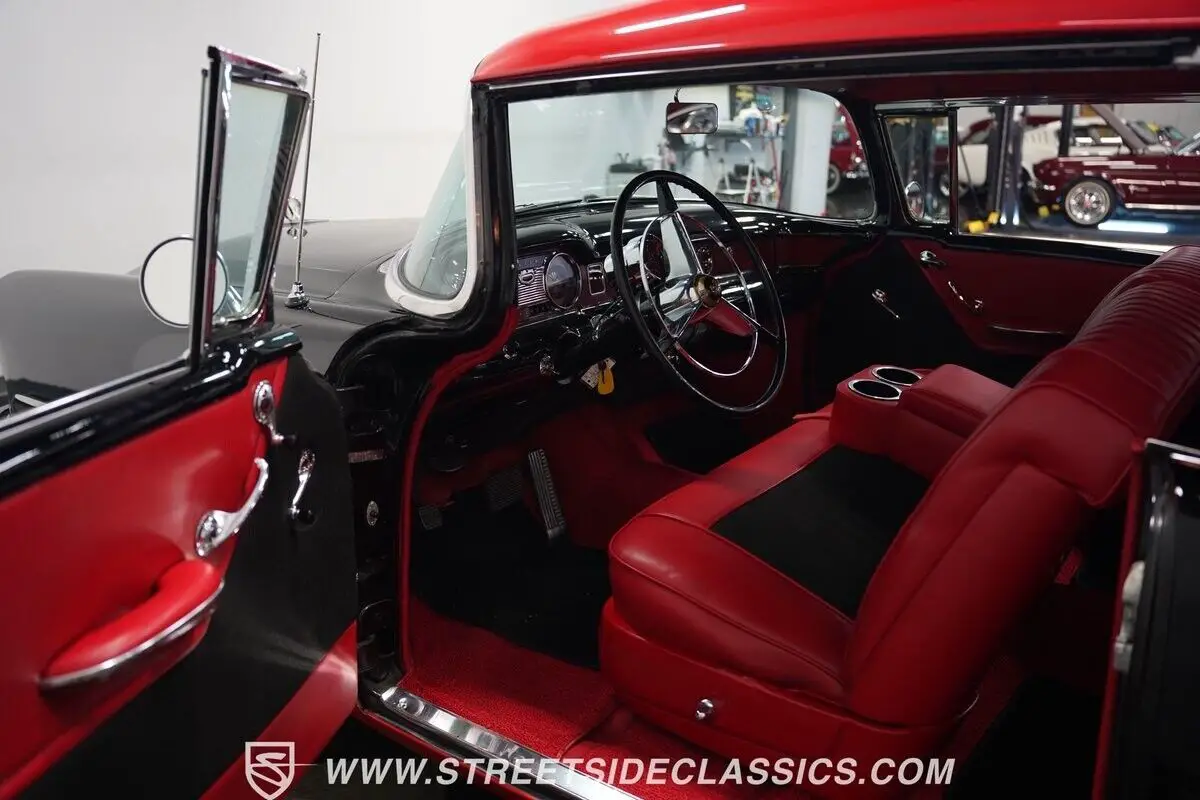 Vehicle Original VIN : 4B1113716HIGHLIGHTS: • 264 Nailhead V8 Engine • 2-Speed Dynaflow Automatic Transmission • Single 2-Barrel Stromberg Aerotype Carburetor • Power Steering • Front Disc Brakes • Stock-Style Suspension with Coil Springs and Shocks • Dual to Single Exhaust with Thrush Muffler • Aluminum Radiator • 12V Electrical System • Black with Red Two-Tone Paint • 15" American Racing Wheels • P225/70R15 Front, P275/60R15 Rear Tires • Chrome Brightwork and Bumpers • Red and Black Interior with Bench Seat • Column-Mounted Tachometer • Column Shifter • AM Radio • Red Carpeting • 5-Digit Odometer • Clean Dash and Door Panels
