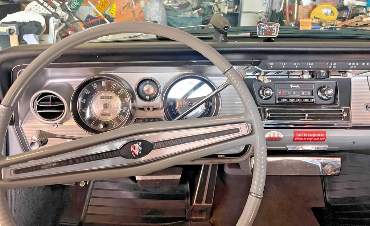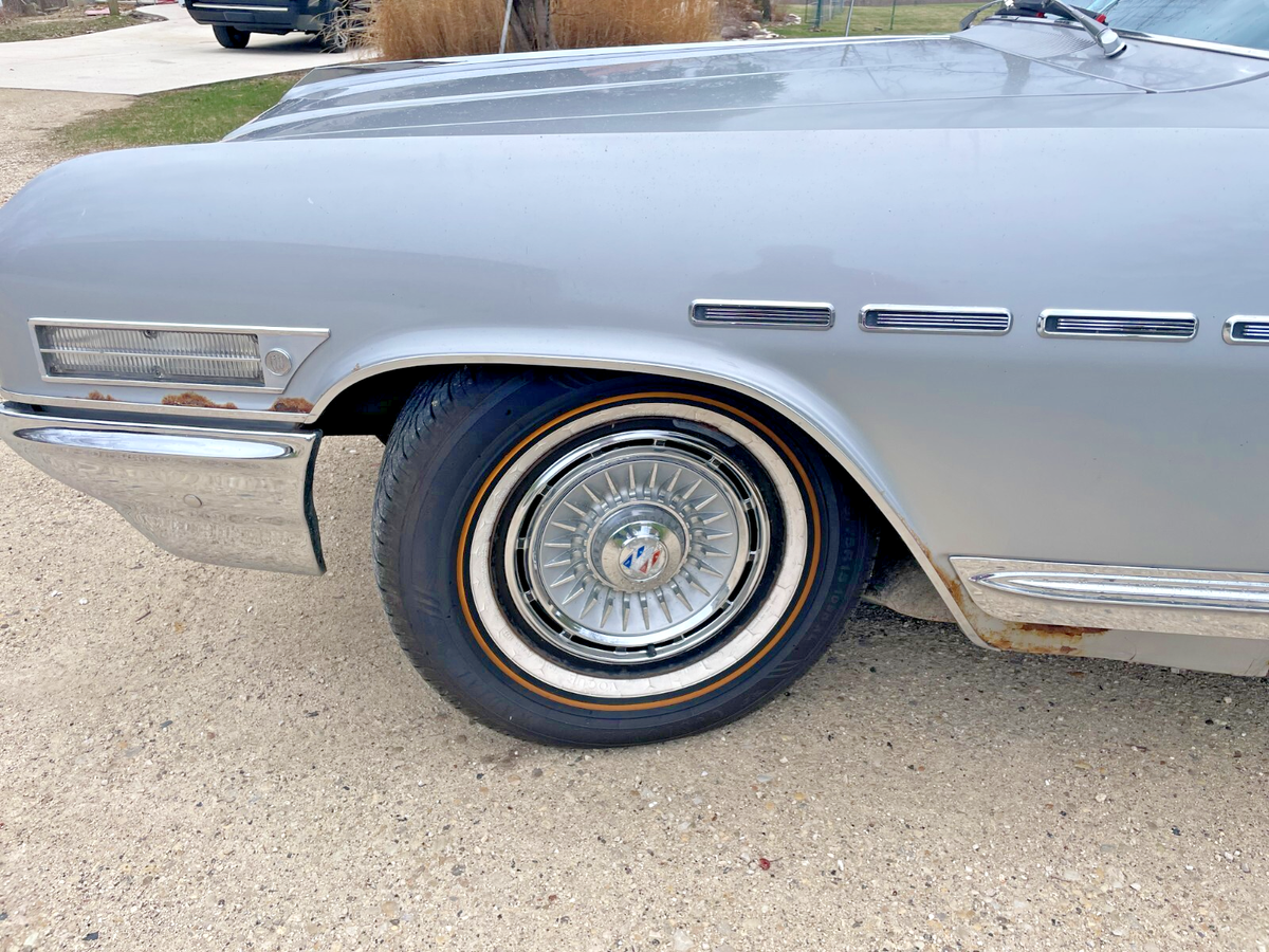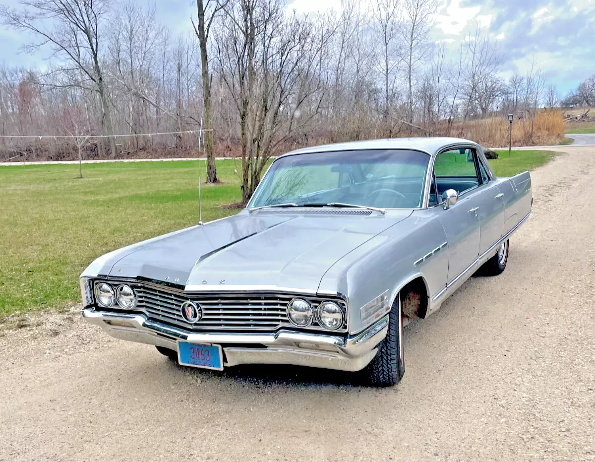 Nice two owner 1964 Buick Electra 225 6 Window hardtop. No pillar between front and back window give a nice open air feel when driving. Original owner was a Doctor's wife from Madison-original hospital stickers are still on the car. Rebuilt original 401 Nailhead has about 1000 miles on it and is a blast to drive- I've put 1000 miles on this car myself. This car will go 70 all day straight as an arrow-and will also cruise at 30 downtown effortlessly. Vogue tires have about 1000 miles on them. Weiand finned valve covers and an aluminum radiator.. This car stops straight with no shudders or weird noises. Completely original interior. This is not a show car-it does have some typical Wisconsin rust and some scratches in the paint. However the frame is good, floors are decent, trunk has a couple smaller corner holes but you can still put 6 bags of golf clubs in there no problem. All windows roll up and down and are not cracked. Horn works. Wipers inop but I just don't drive it in the rain. All lights work. Brand new dual exhaust straight piped back. Clear Wisconsin title in my name. This is a super way to join the world of classic cars and not break the bank. Throw the family in the back and enjoy it for what it is.