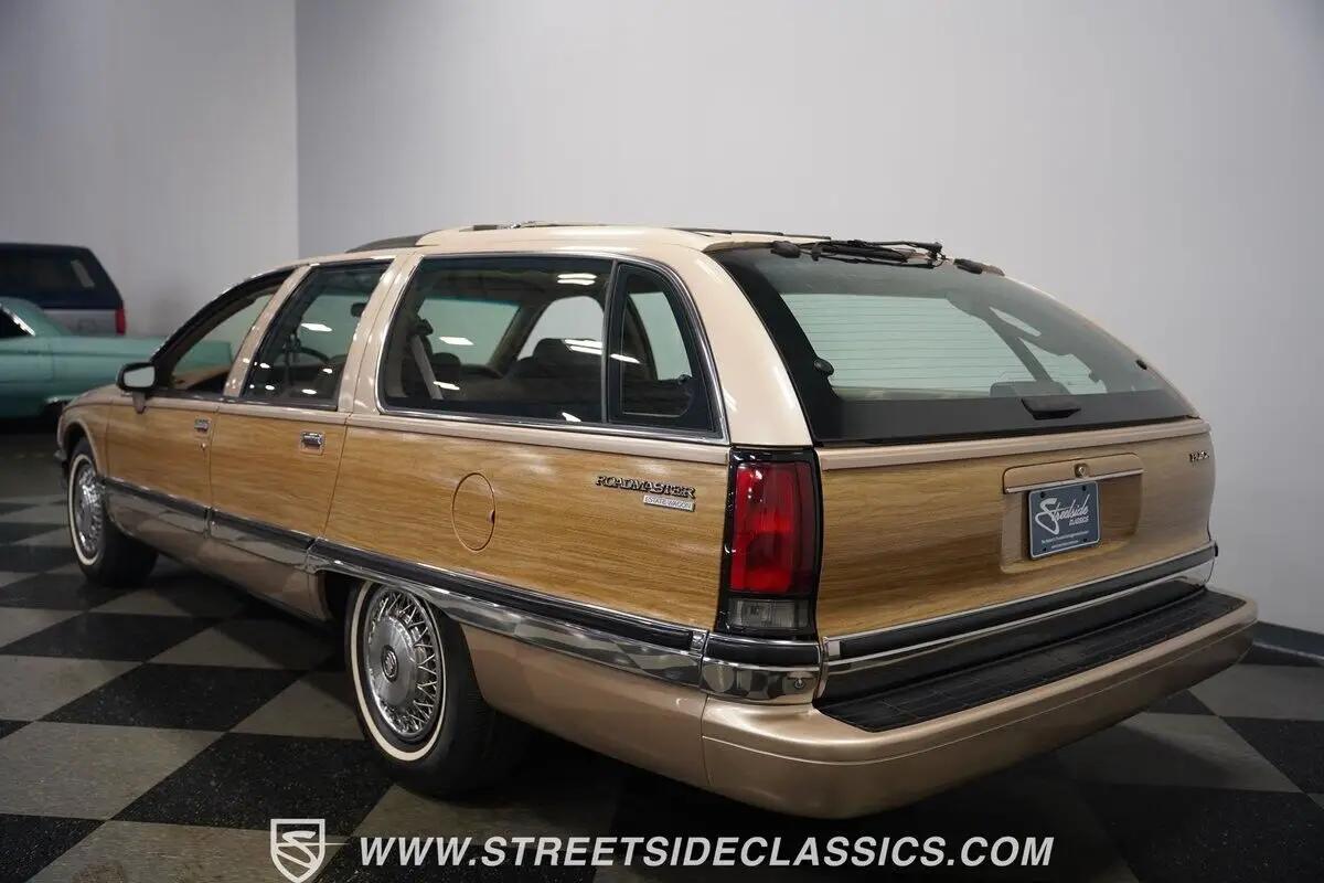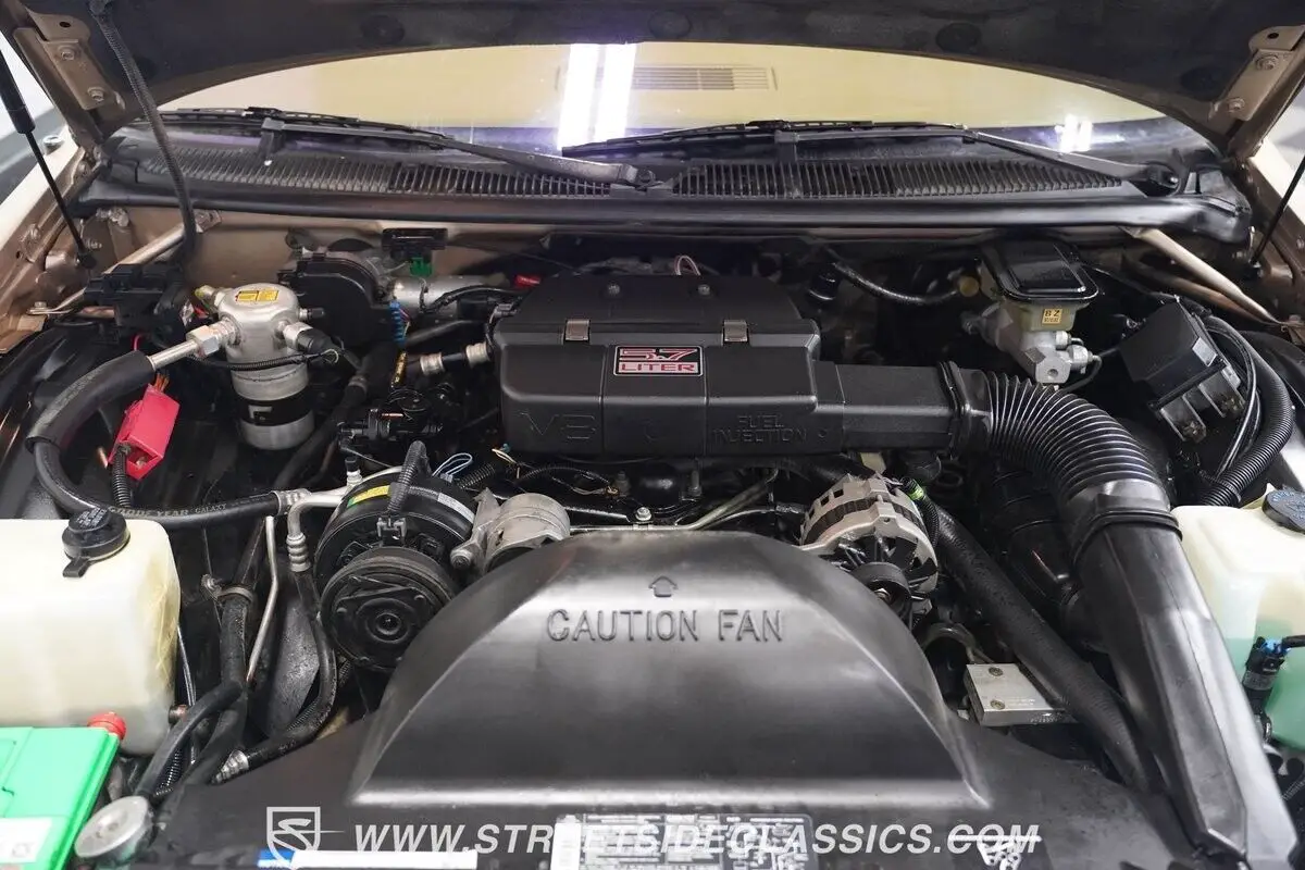 HIGHLIGHTS: • 5.7 Liter V8 Engine • 700R4 4-Speed Automatic Transmission • 3.23 Rear Axle Ratio • Front Disc Brakes • Dual-to-Single Exhaust System • Electronic Fuel Injection • Light Driftwood Metallic Paint • Wood Grain Paneling • 15-inch Factory Wheels • P235/45R18 Tires • Chrome Trim Package • Roof Rack • Factory Towing Package • Beige Leather Upholstery with Power Bench Seats • Third Row Seating • Power Windows • Power Steering • AM/FM Cassette Stereo • Fold-Down Cargo Area