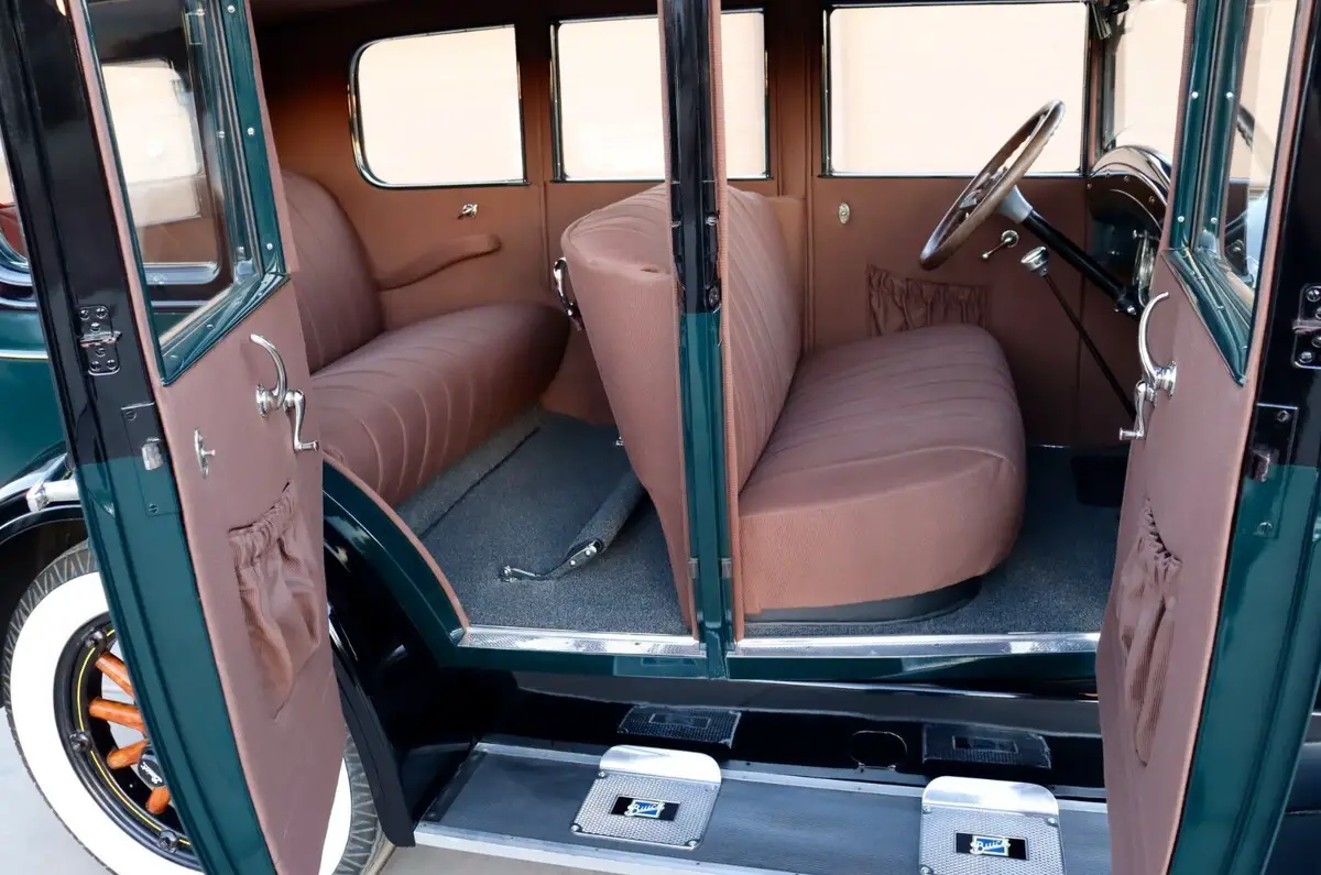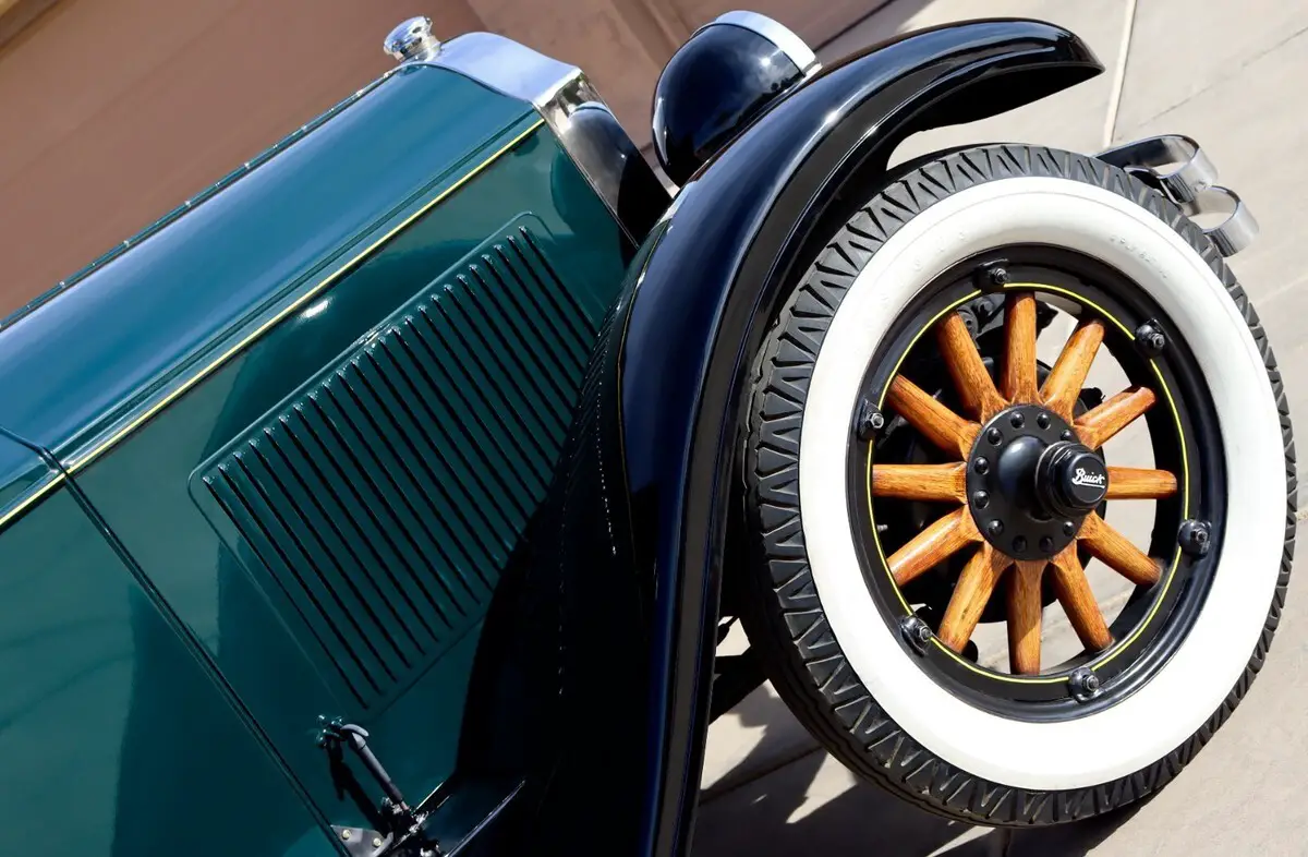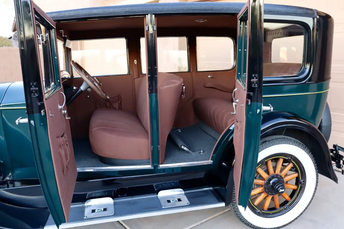 Up for sale we have a nice 1928 Buick Six-Cylinder engine and manual transmission. Restored in California in 2012 and parked after that in a nice private museum/collection in Bakersfield, rarely driven on a nice weekend, beautiful 2 tone paint job, vintage green and black fenders with yellow pin striping accent, paint is in very nice condition, brand new cloth interior and brand new carpet, nice and shiny chrome all around, almost everything was re-chromed, nice artillery wooden spoke wheels and Firestone White Wall tires, very clean engine compartment and very clean undercarriage, no rust at all underneath - this is a California car. Features a rare gear shifter knob which is an antique clock made by Andrews Mfg. Co. in Los Angeles, California. Good glass all around, window cranes are all functional including the small ones located on the very rear and the windshield crane that will lift up the windshield glass a few inches - that was the air conditioning back in the day.... doors are opening/closing as they should nice and tight. This Buick is parked indoors and is ready to go to a new home, clean Arizona title in hand ! Runs and drives but since the car was not driven for a couple of years it's recommended that the new owner will properly turn on the engine after checking all the fluids and manually oil prime all six cylinders, car will also need a new battery !