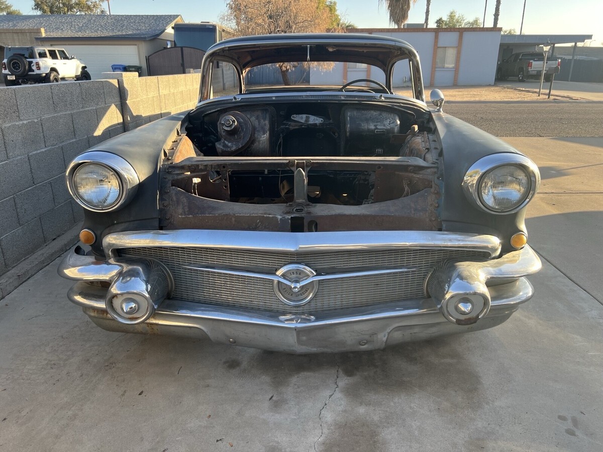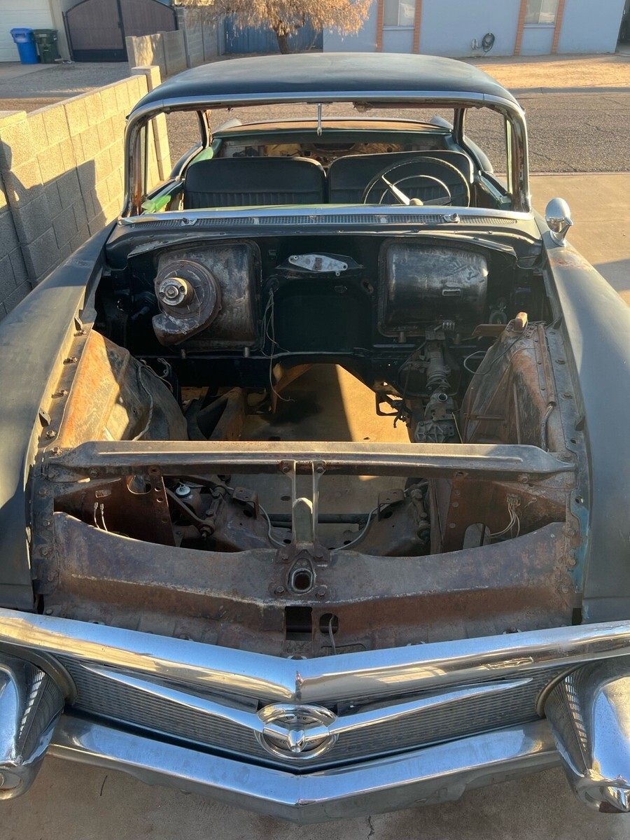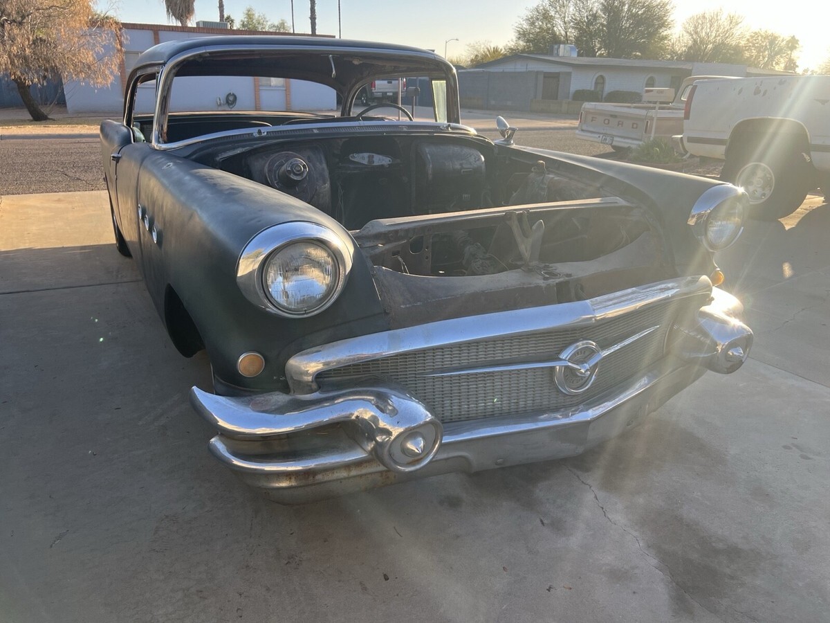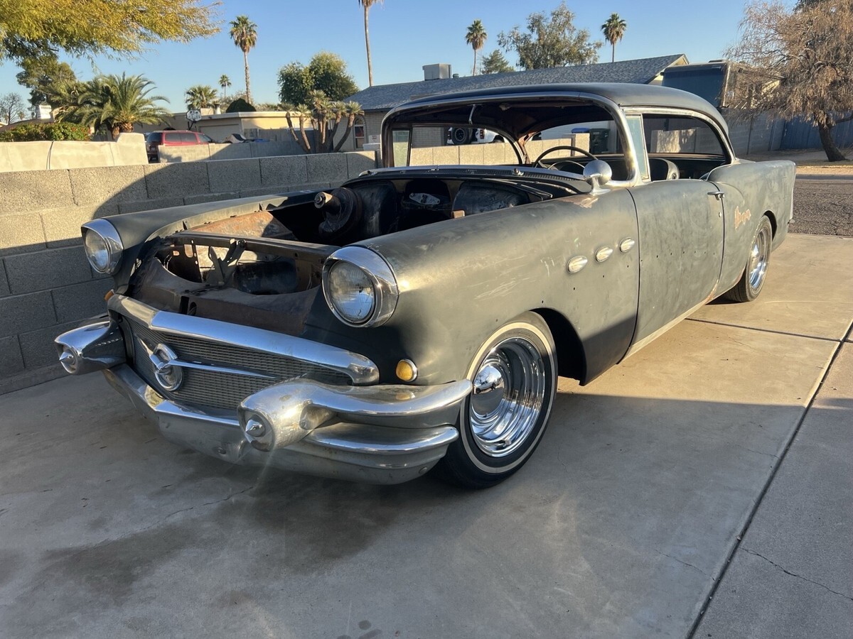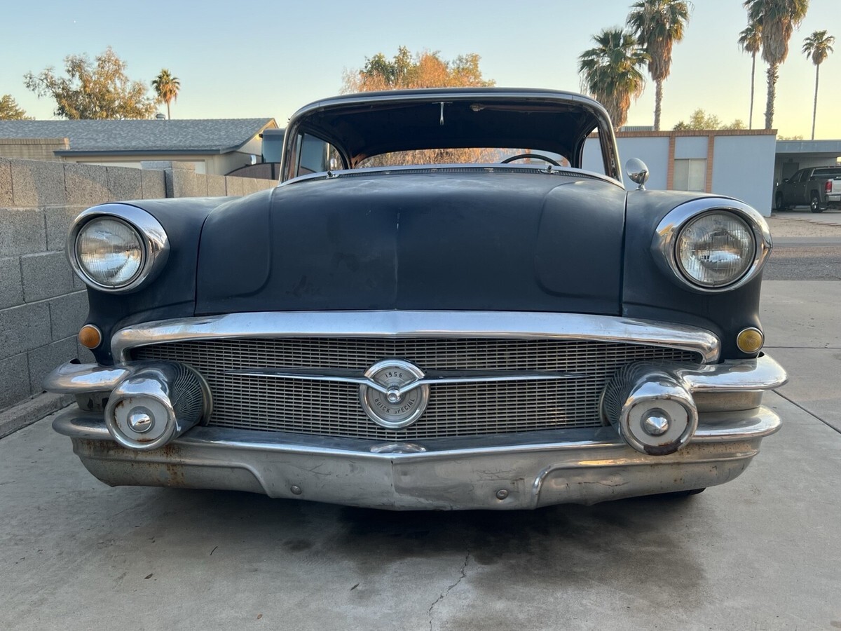 The 1956 Buick Special no post and is a classic project vehicle or parts car or shell and roller. Perfect for a full custom! Not much rust and pretty good straight body and frame. Disc brakes front and a 2000 Camaro rear with disc and posi. Air bags started in rear to make it a roller and easy to load up. Has all the chrome trim besides rear bumper. Chrome steelies. No motor No trans No glass No floor Bill of sale