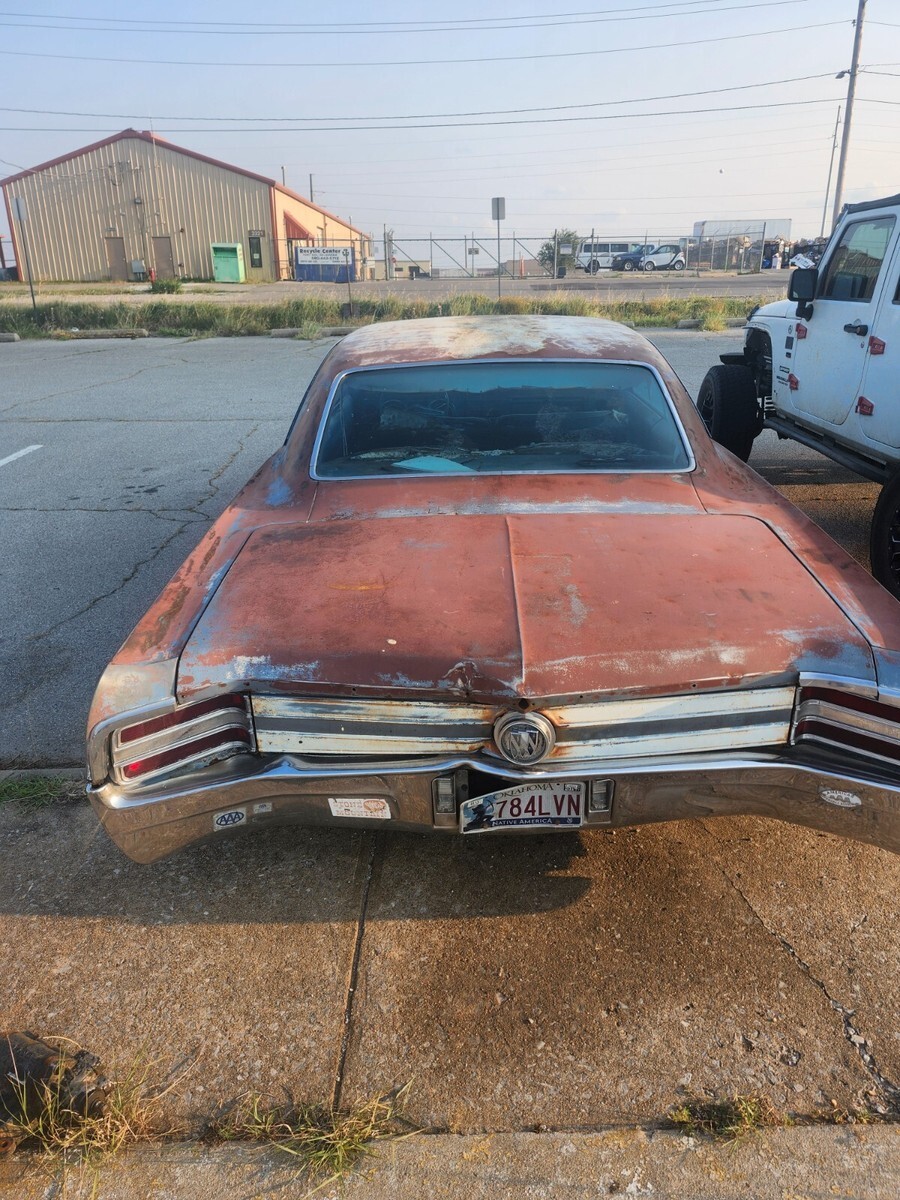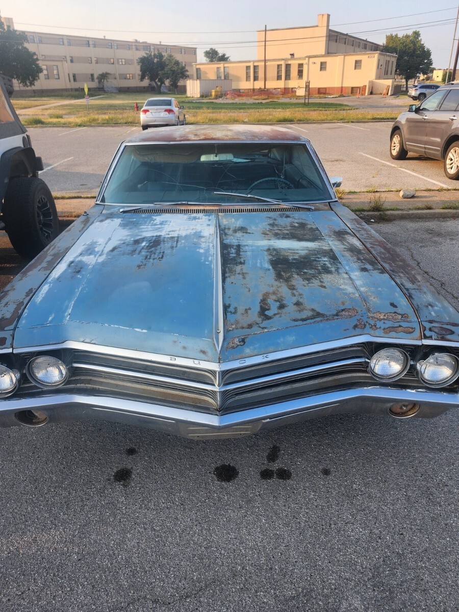 this is a rare 1965 Buick lesaber 400 custom with the 400 turbo transmission has a new Edelbrock carburetor and spacer for it and air filter all on the engine the spacer is still in the box has some rusted areas but it's all solid all around even the trunk will need a new torque converter and breaks to be able to get it driving and maybe a new tire I replaced the rear diff has 2 sets of keys and a new ignition since the one right now is using a flat head screw drivercomes with a clean Oklahoma title that just got madepay at pickup with cashask any questions that you have thanks