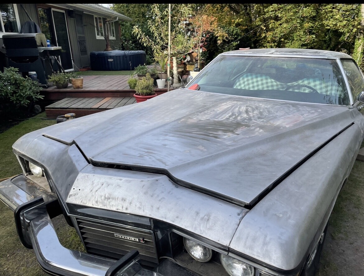 Riviera was ground down to bare metal, see photo, professionally restored, using premium paint products from Dupont. Basecoat/clearcoat, then color, sanded and buffed and polished.