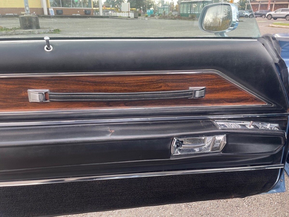 Power steering, power disc, brakes, AC, cruise control, AM/FM, eight track, to speed, rear window, defroster, and tilt steering and dual exhaust with stick mufflers. Tires are brand new. Rocker trim is dents free and chrome both sides. Look brand new with plenty of shine.