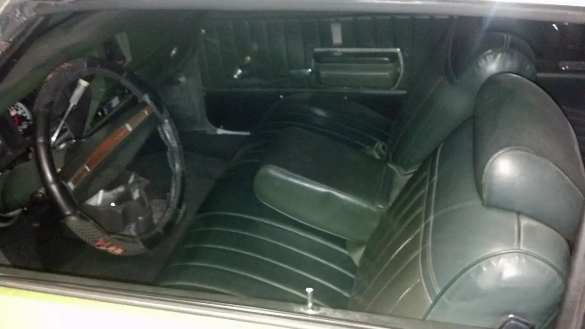 Interior: Is perfect, Dark Green with Black Carpet. I added 2 Auto Meter Gauges under dash, Oil and Temp. I started Installing a Vintage Air, Climate Control System which was like $1300. back 20 years ago, and found a GreenOriginal Dash Pad off Ebaywith the Center A/C Vent as the original Pad doesn't have a Center Vent as the Car wasn't an A/C Car Originally. Only Heater Portion is connected, The remaining Vintage Air Kit will go with the car is in the trunk. I also installed some very nice 6x9 speakers on the rear deck.