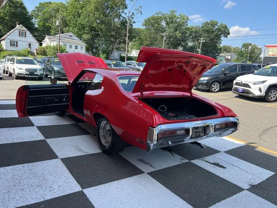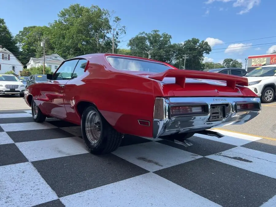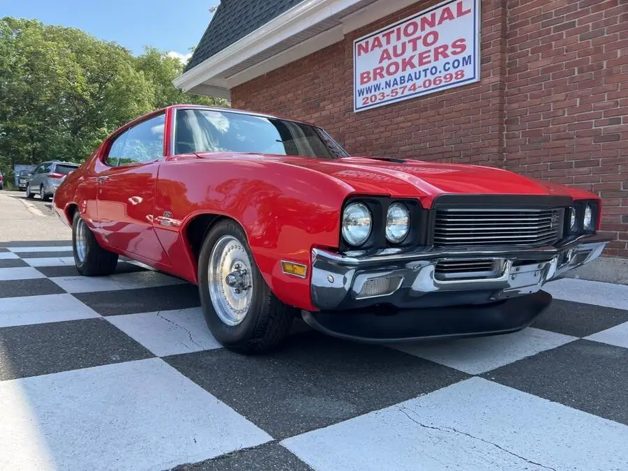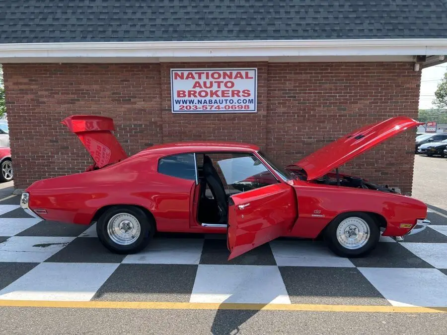 Classic And Specialty Cars Are Shown by Appointment Only. Please Do Not Just Show Up At The Dealership Without An Appointment As The Vehicles Are Not At The Dealership. Please Call 203-574-0698 For An Appointment To See The Car. We Have You Tube Videos Of The Car Running Below. If The Links Do Not Work We Can Text 203-592-2478 Or Send Us Your Email Address So We Can Email Them To You Additional Photos On Our Website www.nabauto.com You are looking at a 1972 Buick GS Stage 1! This car despite not being original is indeed a numbers matching car! The restoration was done just over 500 miles ago and it shows! The VIN indicates the car is a GS sport coupe originally equipped with a 455ci Stage 1 V8. Decoding the data plate reveals the following production information: • Style: 72-43437 – GS Sport Coupe • Body: Z 00337 – Fremont, CA • Trim: 138 – Black vinyl • Paint: 48 B – Hunter Green, black vinyl roof • Build date: 12A – First week of December build date The 455ci Stage 1 V8 was rebuilt and equipped with an Edelbrock intake manifold, a Holley carburetor, a Kenne-Bell camshaft, roller rocker arms, and a Mallory distributor. The 455ci Stage 1 V8 was bored .020? over and rebuilt with forged pistons, roller rocker arms, stainless valves, a Melling oil pump, and a Kenne-Bell camshaft in 1990, according to the seller. It is topped with an Edelbrock aluminum intake manifold, a Holley carburetor, and a Stage 1 ram air induction setup, and additional equipment includes a Mallory distributor, an MSD ignition control module, and Kenne-Bell valve covers. An aftermarket urethane fuel tank is mounted in the trunk.A Dana 60 rear end was also installed along with a TH400 three-speed automatic transmission with a reverse manual valve body and a Hurst Quarter Stick ratcheting shifter. Power is routed to the rear wheels through a TH400 three-speed automatic transmission equipped with a reverse manual valve body as well as a replacement Dana 60 rear axle. Full-length headers feed into a dual exhaust system with an X-pipe. The body was refinished in red, and the interior was re-trimmed in black with vinyl and cloth upholstery. Additional modifications include full-length headers, a dual exhaust system with an X-pipe, 15? Centerline wheels, a Sanyo cassette stereo, and AutoMeter gauges. The Centerline alloy wheels are mounted with 205/75 Steel Belted Radial front tires and 275/60 Big O Super Sport rear tires. The seller notes the power steering and brake booster were removed, and braking is handled by front discs and rear drums. The interior was re-trimmed during the refurbishment under prior ownership and features black vinyl seat upholstery with cloth inserts. A Sanyo cassette stereo is installed along with a Hurst Quarter Stick floor shifter, and the climate control equipment has been removed. The Formuling steering wheel frames AutoMeter instrumentation consisting of a tachometer, a 120-mph speedometer, and gauges for fuel level, water temperature, and oil pressure. Here are a few You Tube Videos of the car. Copy and paste them into your browser: https://youtu.be/ybVkld9REdA?si=1KKDxiOGHPis4YaV https://youtu.be/Cg6xh6Yw0z8?si=2kW5DG0zv5f7xX40 https://youtu.be/zKaVuE01zPw?si=IXQgWqhTEoVGZ6L1 https://youtu.be/PRoAgFkW8n0?si=kmjyJzN37G68bd6i https://youtu.be/P846-t3kV_k?si=SqRrcbFs-d7cCF3p