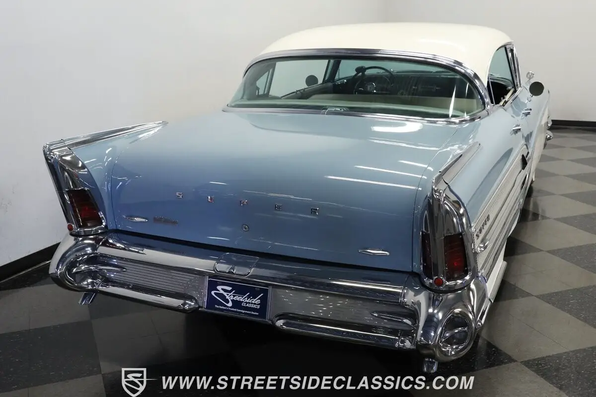 Vehicle Original VIN : 5E6002989HIGHLIGHTS: • 364 CI V8 Nailhead Engine • Tri-Power Setup (3 Rochester 2-Jet Carburetors) • Offenhauser Intake Manifold • Offenhauser Valve Covers • 3-Speed Automatic Transmission (Flight-Pitch Dynaflow) • Power Disc Brakes • Dual Exhaust • Upgraded Serpentine Belt System • A-Arm Suspension with Coil Springs and Shocks • Coil Spring Suspension with Shocks • Light Blue and White Two-Tone Paint • 15" Chrome Wire Spoke Wheels in 225/75R15 Coker Classic Whitewall Tires • Chrome Bumpers and Trim • Front and Rear Vent Windows • Black and White Interior with Power Bench Seat • Power Windows • Column Shifter • Aftermarket Tachometer on Column • AM/FM CD Player • Round Decklid Speaker • CD Changer in Trunk • Power Steering • Owner's Manual