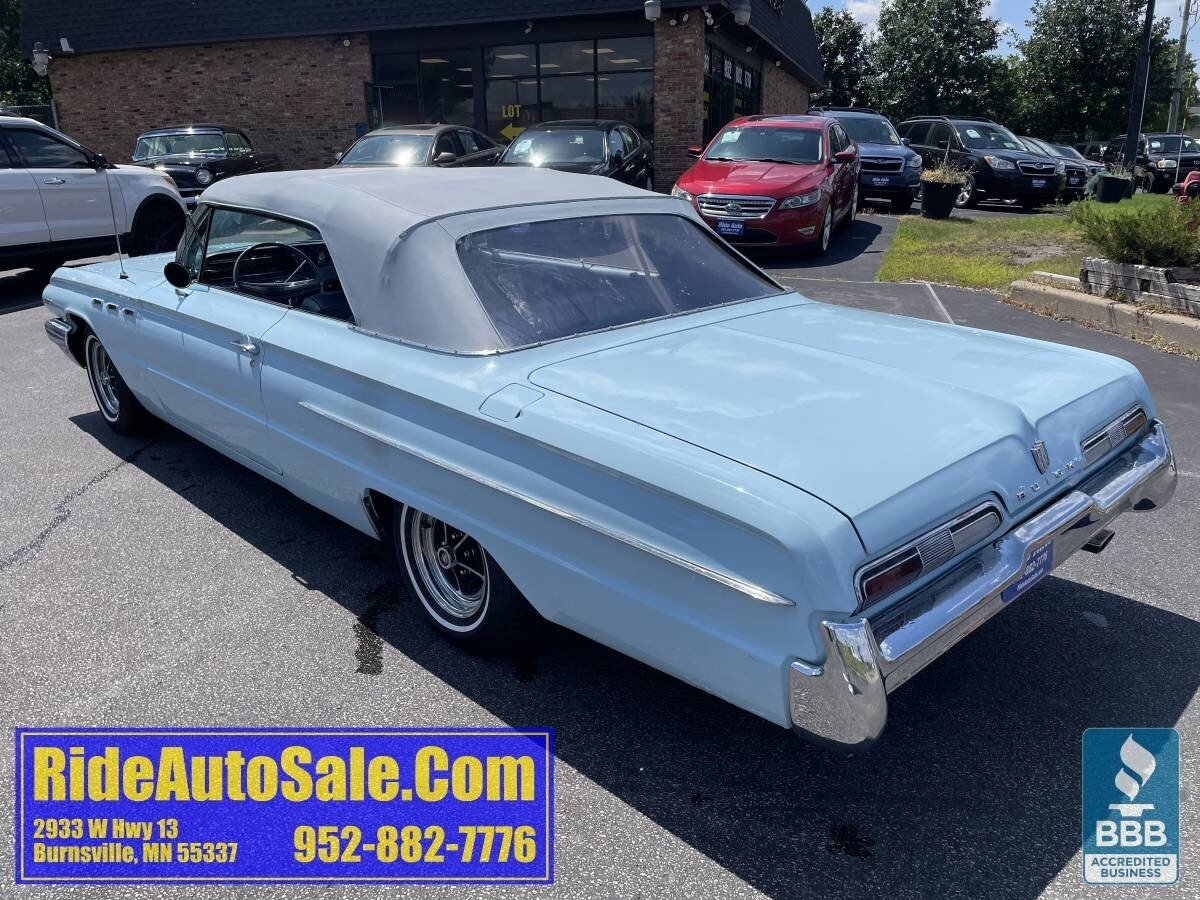 Please click or copy the following link into your browser to watch a short youtube video of this 59' and its features as well as current condition.https://youtu.be/R7gzxPWbUCo?si=v1zNSPCi0xI4mQzBJust in time for summer and car shows, is this amazing 1962 Buick Invicta with power Convertible top that is turn key ready, 62,368 actual miles, has the big 401 Cubic Inch (6.6 liter) "Wildcat" with a respectable 325HP Nailhead V8, recent tune up ( spark plugs / wires / distributer) vehicle starts up on first try and will idle quietly and smoothly, upgraded all aluminum radiator and condenser, new water pump as well as pullies /belts/ hoses and fan, new carburetor, new fuel lines and tank, has newer custom dual exhaust system that sounds amazing, Smooth shifting Automatic transmission will get this vehicle cruising at hwy speeds with ease ( will do 80MPH with ease and will maintain a smooth ride), Cold Air conditioning and great working heater for colder mornings with the top down, power steering is effortless and will make your drive a lot more enjoyable specially if your significant other enjoys driving as well, smooth suspension is tight and can tackle the biggest potholes no problem, this mighty Buick has newer upgraded brakes all around and they stop this 2 ton vehicle no problem at all ( I was able to lock up all 4 wheels to make sure they are all working), the interior vinyl seating is in great shape and has seatbelts for all your passengers to ride along, floor carpeting and door panels as well as the headliner are all in great shape, very nice chrome throughout the vehicle and the original paint is in amazing shape because this was a garage kept vehicle, being a vehicle from a state that does not use harsh chemicals on the roads means it has a solid frame and floor boards (we lifted up the vehicle and took pictures of undercarriage (no leaks at all and we give it a full grease and lube job as well), all the glass is in great shape and has manual windows and locks, windshield wipers work and so do the headlamps as well as signals, the original AM radio it there and right below it is a professionally installed upgraded to Bluetooth with CD and Cassette player for those old school folks that still have them (quality speakers installed), power trunk release in glove box, Mag wheels with new tires and good spare along with jack ( comes with 2 set of wheels and tires as well as hub caps), Comes with original owners manual as well as several repair manuals and original spare parts that have been upgraded, this is a real head turner and will bring a smile to your face as you drive it but to an average passersby they may think its a 1962 Impala when looking at the front but the back is no mistaken that this is a Buick and an iconic American muscle car, priced extremely aggressively when you compare to other Buick listing's on eBay that are in the upper $20,000 plus, website RideAutoSale.com !!!VIN# 613035636 <-------------- Clean title vehicle !We can help with transportation right to your driveway using central dispatch to get the best rates. Ask us about a quote.Text message or Call Richard any time at 952-221-6983 with any questions you have :)We are a motivated seller and would LOVE to see this car go to a good home as they always do !View over 50 plus pictures on our website RideAutoSale.comRide Auto Sales and Finance2933 West Hwy 13Burnsville, MN 55337Monday to Friday 9:30AM to 5:00PMSaturday 9:30AM to 2:00PMClosed on Sundayshablamos españolLike us on Facebook