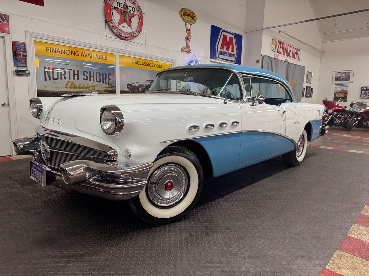 *1956 BUICK CENTURY*2 DOOR HARDTOP*BLUE AND WHITE TWO-TONE*BLUE INTERIOR*322 C.I. V8 ENGINE*AUTOMATIC TRANSMISSION*MANUAL DRUM BRAKES*POWER STEERING*POWER WINDOWS WORK AS THEY SHOULD*CONTINENTAL KIT*VERY NICE BODY AND PAINT*VERY ORIGINAL INTERIOR (SOME NORMAL WEAR EXISTS)*FACTORY AM RADIO IN WORKING CONDITION*NEW BRAKE SERVICE JUST COMPLETED 50 MILES AGO*RECENT SERVICE COMPLETED PRIOR TO LISTING FOR SALE*RUNS AND DRIVES GREAT**CALL US TODAY844-652-8767**ASK ABOUT OUR EASY FINANCE OPTIONS**WE SHIP WORLD WIDE