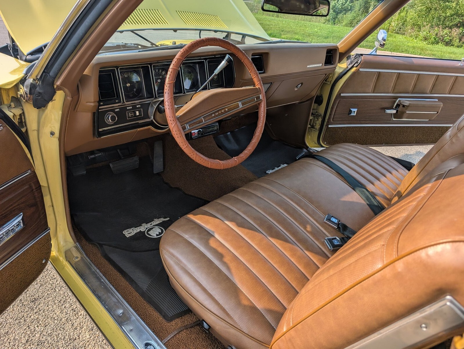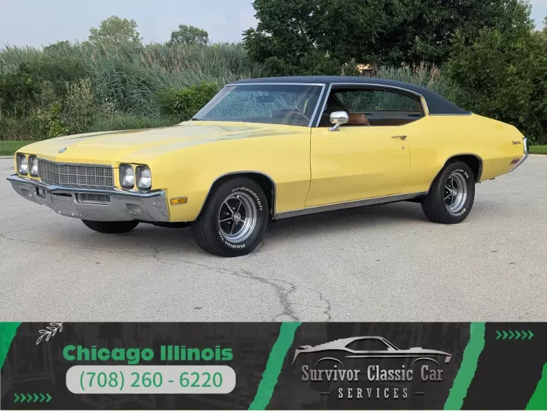 Survivor Classic Car Services Chicago is proud to present this partial survivor 1972 Buick Skylark. Under the hood is believed to be the original 350 cubic inch V8 and 3-speed automatic transmission. The 4bbl carburetor sitting on top of the engine feeds a steady supply of gas to keep this baby firing on all cylinders! The cast iron powerplant exhales through a set of recently installed Dougs ceramic coated headers and into a dual exhaust system using chambered mufflers to tone down the volume while keeping the tone just right for a classic muscle car.